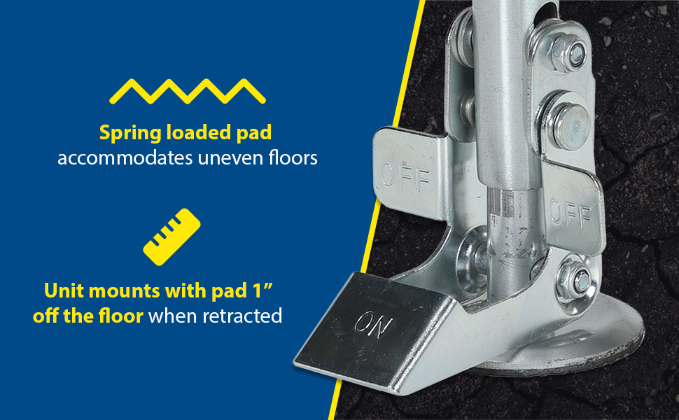 | Steel Right Mount Hand Operated Floor Lock 10 to 12 In. Height Silver | Mounting Height (in.): 10 to 13-7/8 Retracted Height on Bottom Mounting Hole (in.): 10 | 9 |