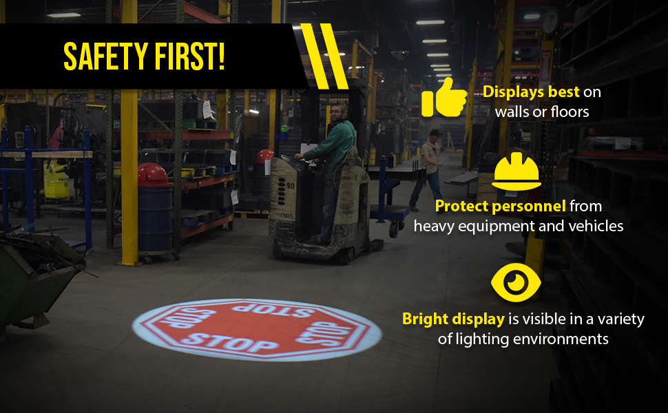 Safety is everyone's number one priority. And a virtual stop sign projector is a great way to help ensure that safety. Virtual projectors work wonders in heavily traveled areas where personnel and heavy equipment often meet. The projector best displays signs on walls or floors. Picture is clearly visible in a variety of light environments. Simple to mount in the desired location. Hardware is included.