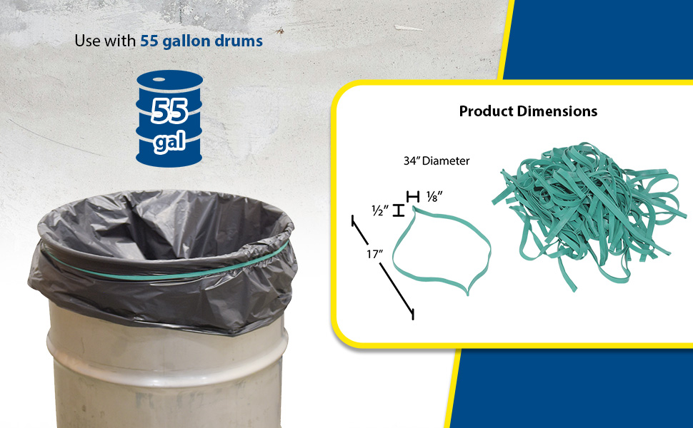 The Pallet Band, model BAND-92, minimizes carton shifting to reduce product damage of pallets in transit. Easy to use without any need for special equipment. Unit is cost effective and environmentally friendly. Moisture will not get trapped under rubber band. Packaged 50 pieces per carton. The Drum Band, model BAND-34, is used to help secure drum liners. Unit is cost effective and environmentally friendly. Packaged 50 pieces per carton.