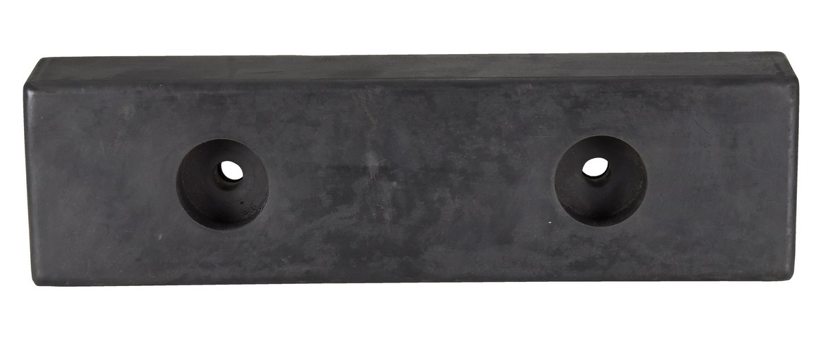 Rubber Rectangle Molded Bumper 16-1/8 In. x 4-29/32 In. x 2-1/8 In. BlackThe specialty molded Dock Bumper is manufactured from fiber reinforced prime rubber containing nylon and polyester. This molded bumper is built to endure years of abusive pounding and has pre-drilled countersunk mounting holes for easy installation. Bumper offers a plastic face bumper that features a two (2) piece construction fully assembled and ready for installation. The installation hardware is available separately.