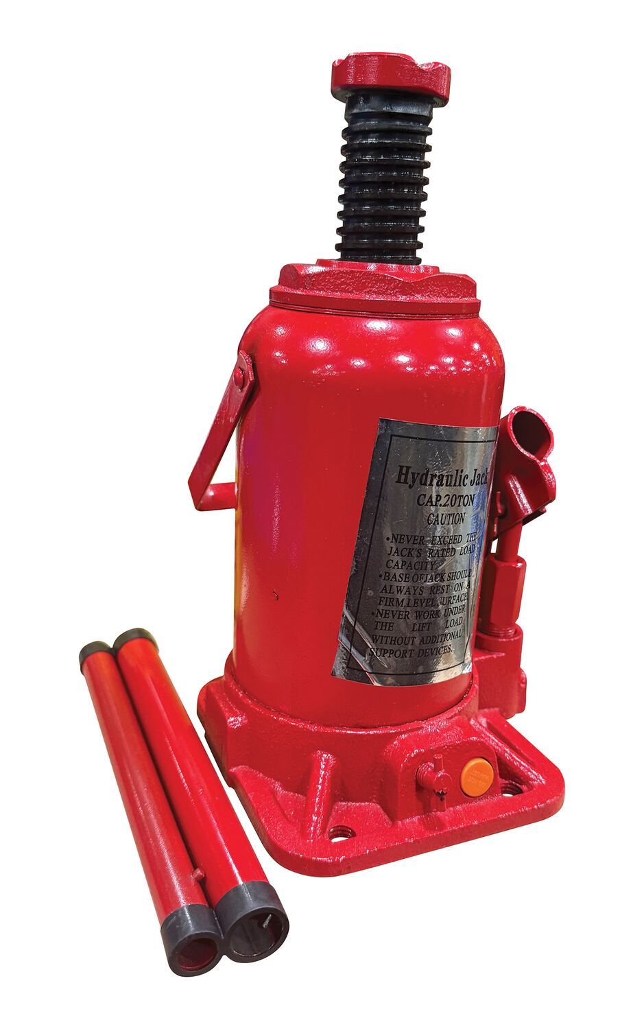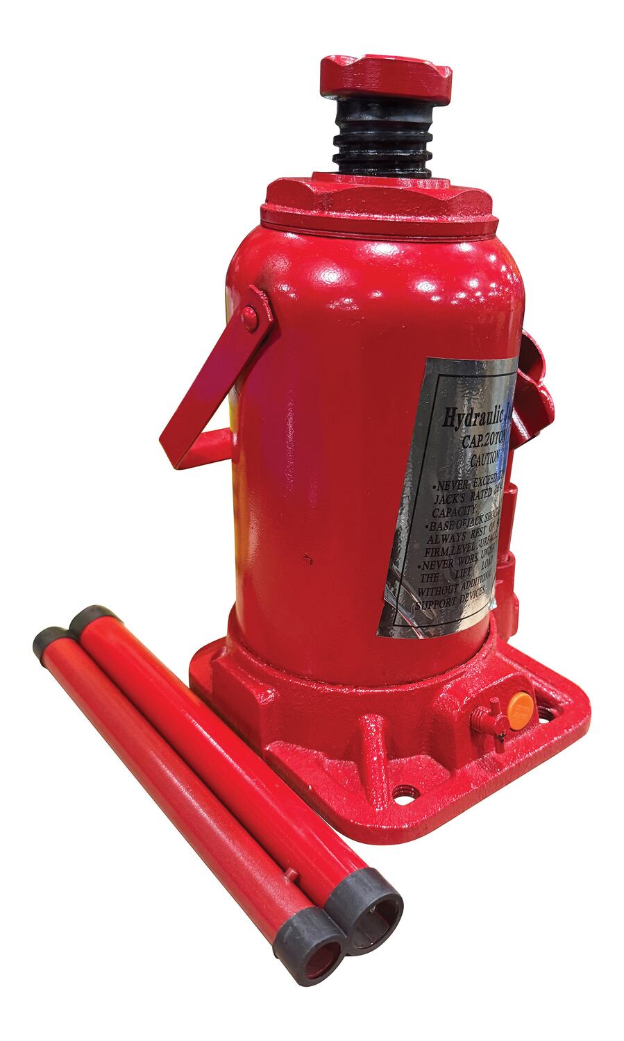 Steel Hydraulic Bottle Jack 6-1/32 In. x 9-7/16 In. x 29-19/32 In. 40,000 Lb. Capacity RedThe hydraulic bottle jack is ideal for the manufacturing and maintenance industries. The design allows for an impacting surface area which creates more stability. The steel construction enables the product to be strong and durable. The included handle is removable.