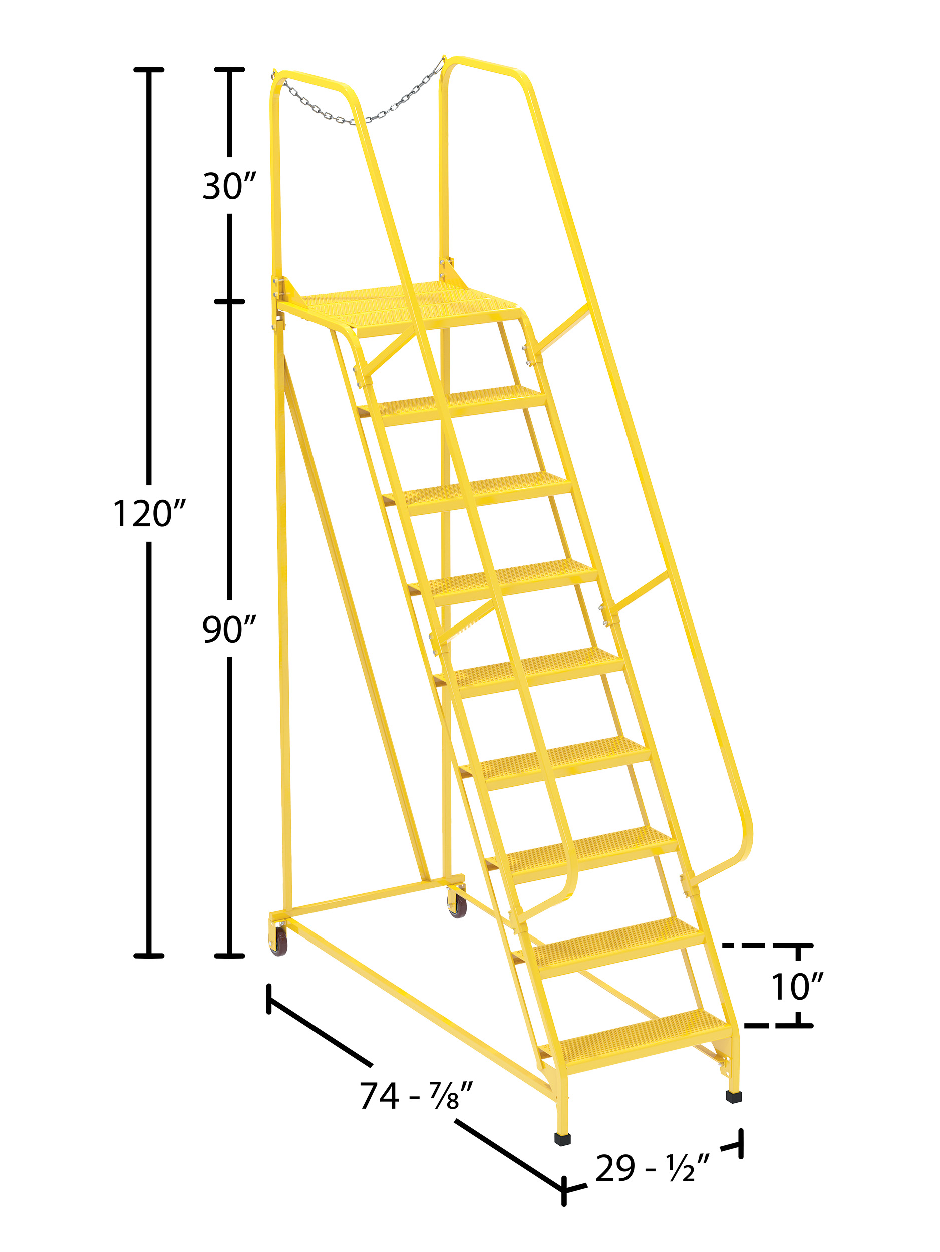 | Top Step Height (in.): 90 | Hand Rail Height (in.): 30 | Top Platform Length (in.): 21 |