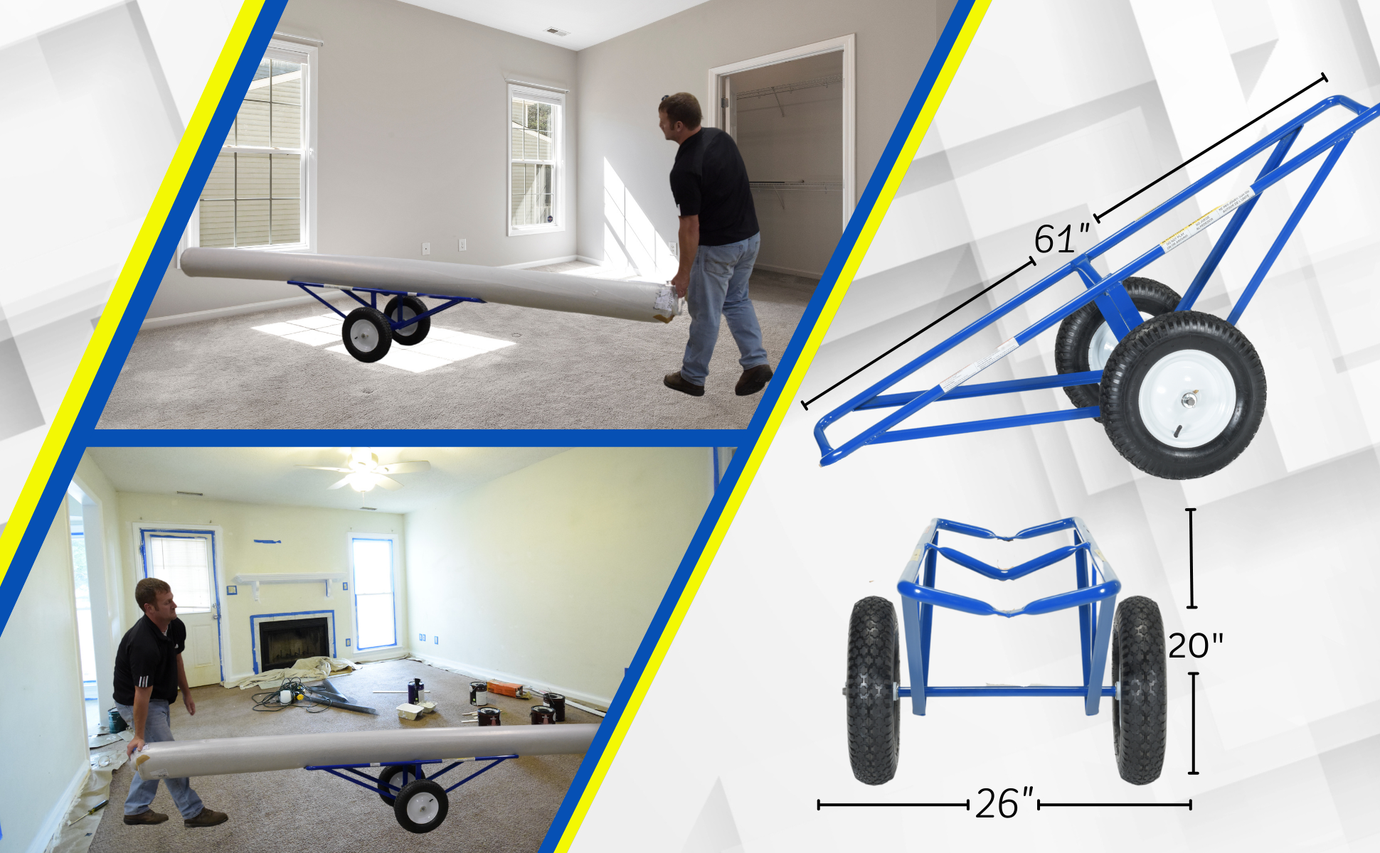 CARPET-45-FF CARPET-45-FFPortable Carpet Dolly with Foam Filled Wheels 61 In. x 26 In. x 20 In. 500 Lb. Capacity BlueUniform Capacity (lb.): 500