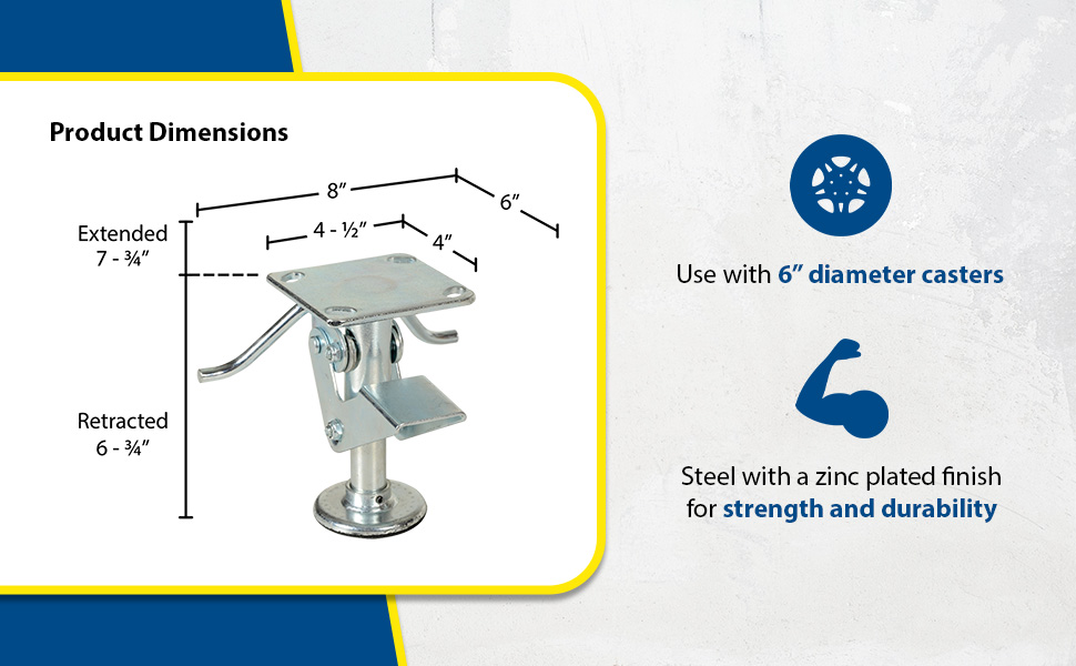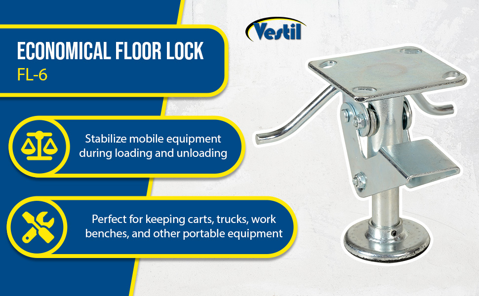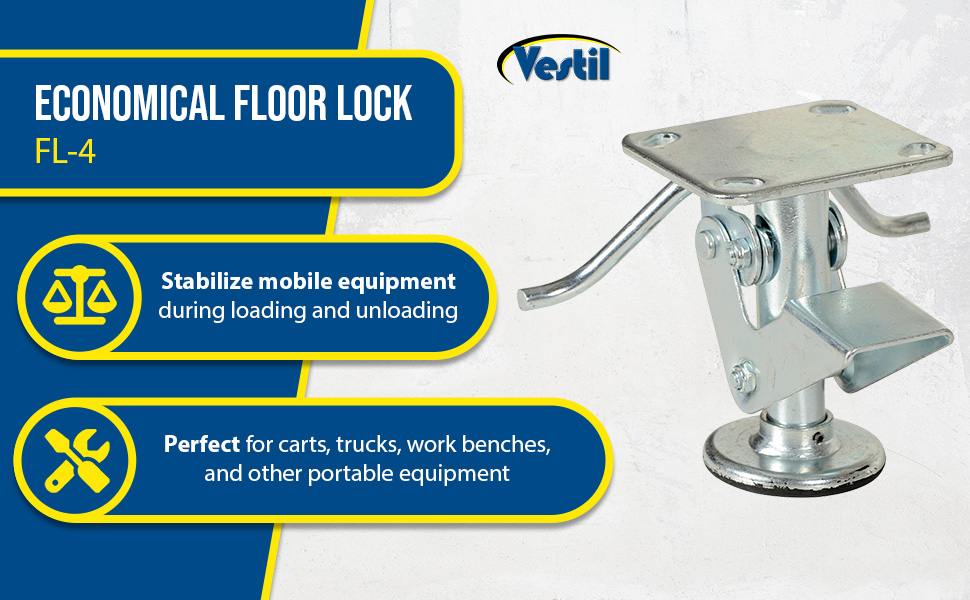 Our economical floor locks help to stabilize mobile equipment during loading and unloading. They are perfect for keeping carts, trucks, work benches, and other portable equipment stationary. All of these floor locks are spring loaded and offer a non-skid rubber foot pad to keep equipment in place. The heavy-duty steel construction has a bright zinc plated finish.