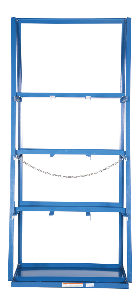 Designed for storage of long parts close to the worksite. Long pieces stack vertically while shorter parts are kept horizontal on the three pan shelves. Designed to be placed up against a wall. Unit is supplied with lag down points. Includes a restraint chain to hold items in each bay. The capacity is 3,000 lbs. when evenly distributed. Bolt together design with blue painted finish. Some assembly is required. (4) 1/2" mounting holes at the base plate. 3/8" mounting hardware needed to fasten.
