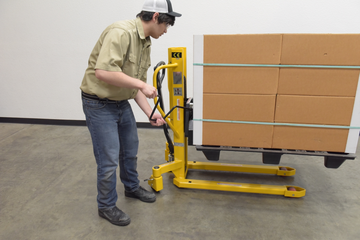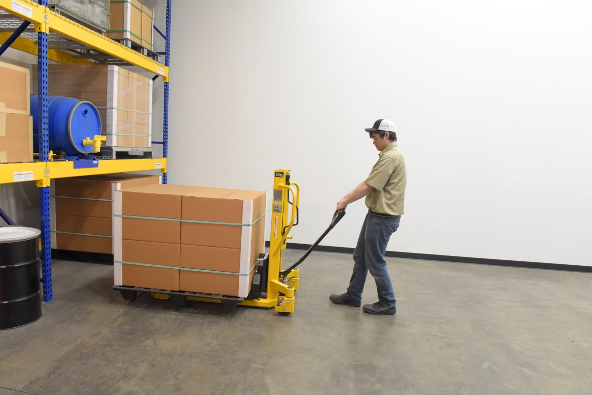 A Lift and Tilt pallet truck is an outstanding addition to a variety of production environments. The hand pump lever functionality gives the user control over the precise height movements of the forks. With a wide service range, items both large and small can be loaded and unloaded at a height that best fits the users preference. For items that may need added stability, the tilting function is available. The tilting function can be used up to 20 degrees tilt for extra steadiness. Steel construction with a powdercoat finish for added baked in toughness.