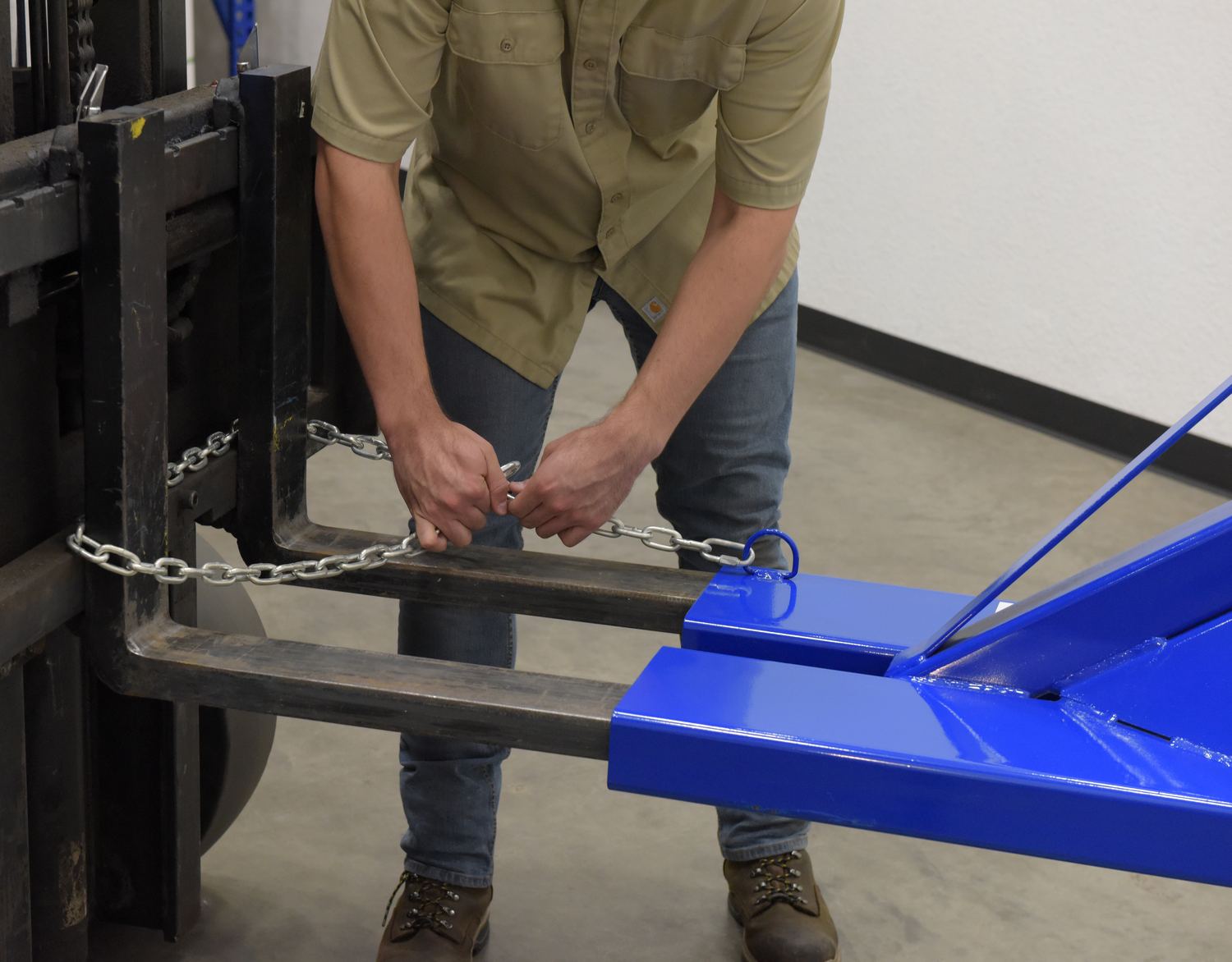 The bulk bag lifter is a proficient addition to any industrial and manufacturing setting. The closed ended fork pocket design provides stable support throughout the lifting process. The lifter is adjustable and is capable of being extended to different heights. The extension has multiple intervals that can be chosen from to best fit the application. After choosing the best lifting height, the bag is secured in place by the included lifting hook.