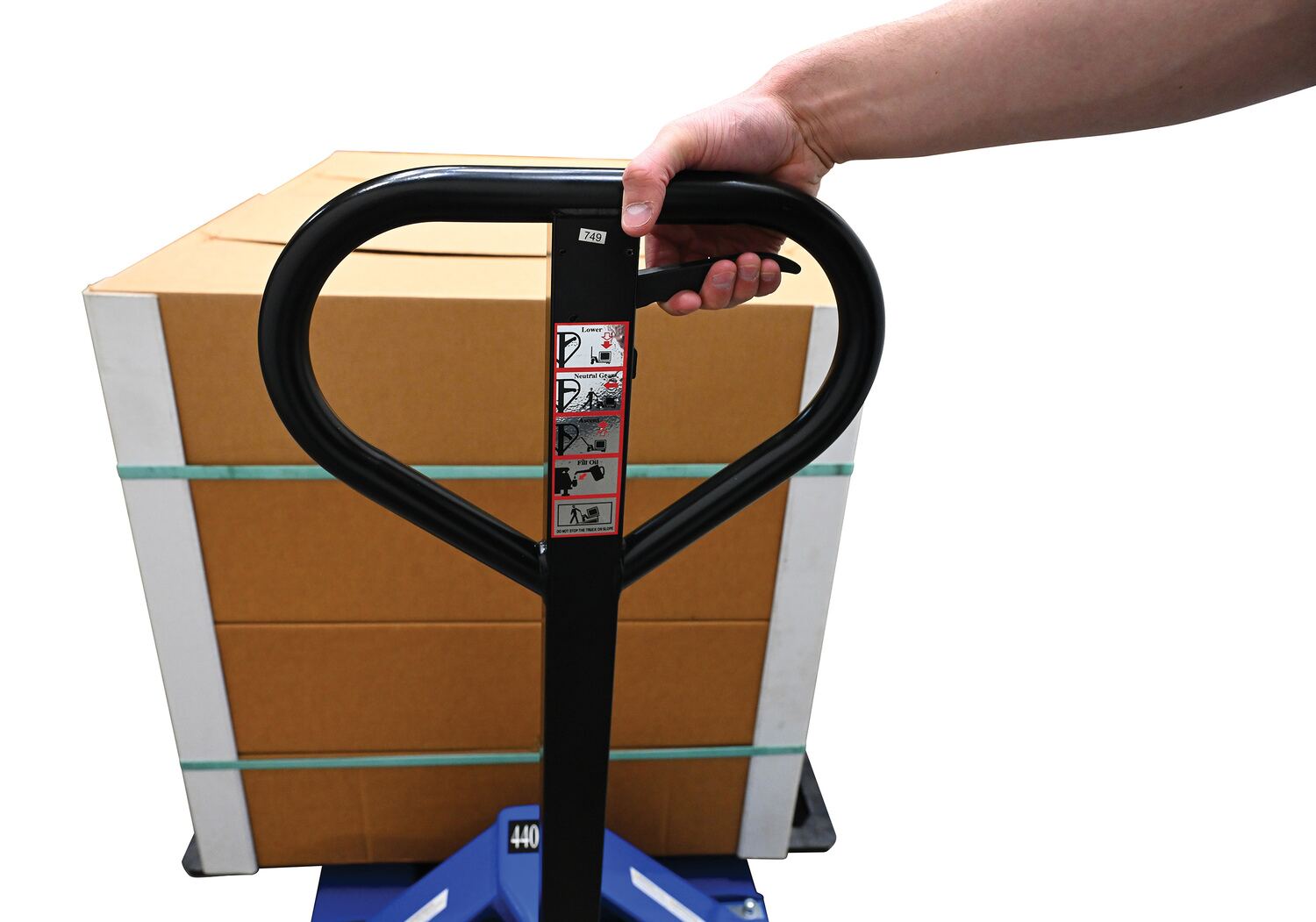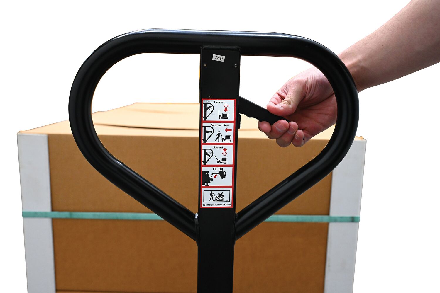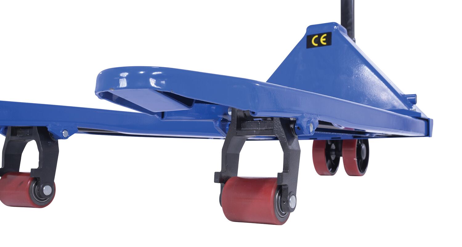 A hydraulic pallet truck with adjustable forks makes moving heavy loads a simple task. The open design is also excellent for performing any preventative maintenance, with all parts being easily accessible. With a robust steel frame and a unique chassis assembly, this pallet truck is built to last! A hydraulic hand pump mechanism makes the lifting and lowering process, quick and easy. To limit abrasions or scratches the truck is finished with a durable baked in powder coat.
