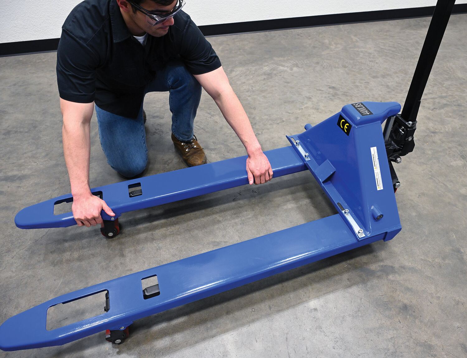 PM4-ADJ-2127-48 PM4-ADJ-2127-48Steel Pallet Truck 48 In. Long 21 In. -27 In. Adjustable Width Forks 4,400 Lb. Capacity BlueUniform Capacity (lbs.): 4,400
