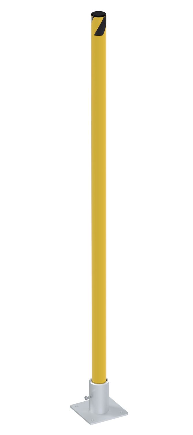 When objects and personnel need to be protected look for a safety bollard or machinery guard! The bollards can be used in a variety of settings, while also enduring harsh outside conditions. The bollards are detachable from the single socket base plate, allowing for quick installation and removal. Built of steel with a powder coat finish for baked in added toughness. Included cap is made of plastic. The High Profile machinery guards protects racks, building walls, expensive equipment, and a variety of other applications. These guards are detachable from the single socket base plate, allowing for quick installation and removal. Each guard is built of powder coated steel, while the base plate has a galvanized finish. Four (4) pre-drilled 3/8" mounting holes in each plate. Mounting hardware sold seperately.