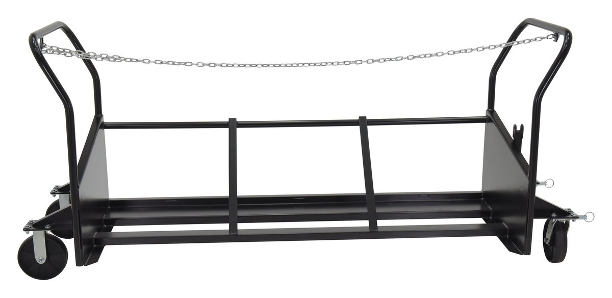 No more lugging heavy trash cans around instead transport them with a Trash Can Cart. Transport up to three trash cans at a time. Each unit is secured in place with a heavy duty chain and chain retainer. The push handle is located at an optimum ergonomic height of 40-11/16". Tow bar on one end for towing with a golf cart or similar service vehicle and a pitch hitch on the other end to attach multiple units together for towing. Rolls smoothly on four 8" x 2 (2) rigid, (2) swivel 4 position locking casters. Trash Cans sold separately, see here.