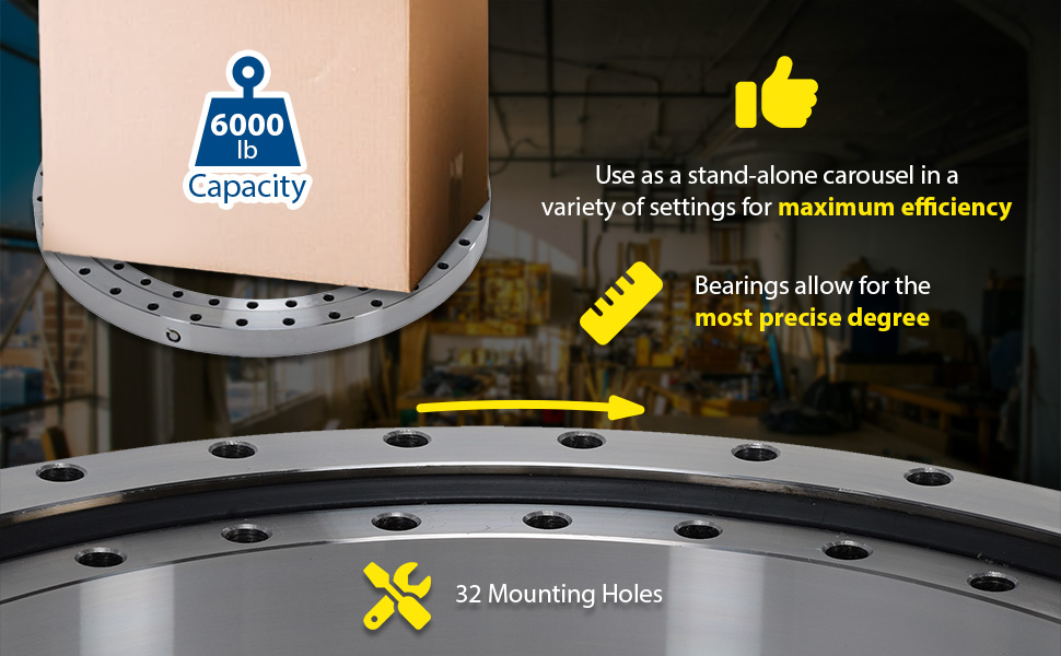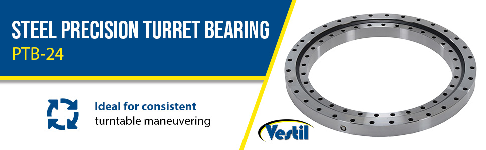 The Precision Turret Bearing is ideal for consistent turntable maneuvering. The bearing is able to meet the most precise degree, when they matter most. The unit can be used as a stand-alone carousel in a variety of manufacturing settings. With a lightweight construction the bearing is easily transported and turned softly during procedure.
