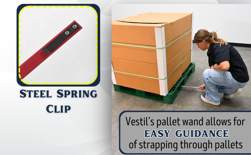 • Pallet wand allows for easy guidance of strapping through pallets