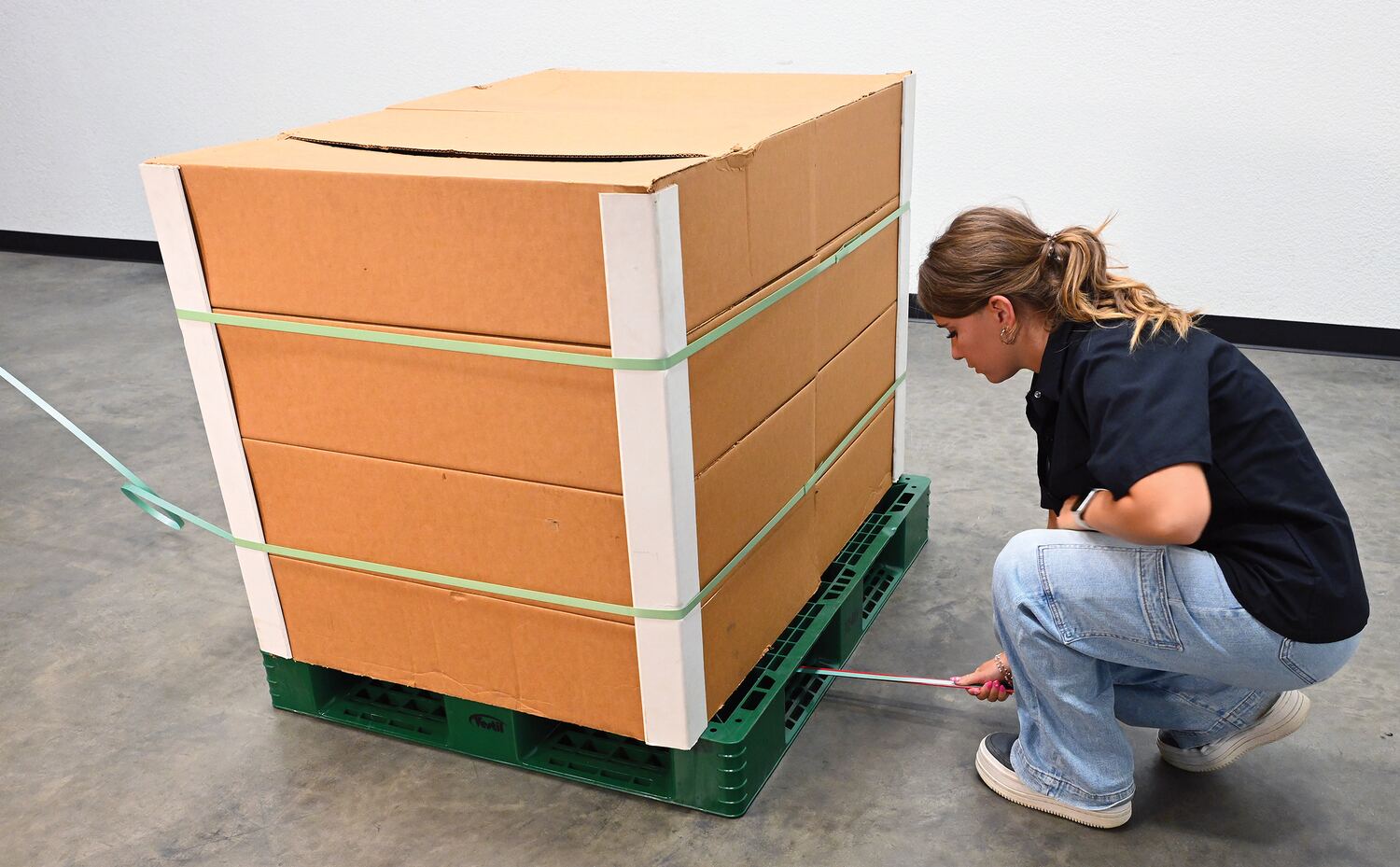 • Decreases the time it takes to manually strap pallets