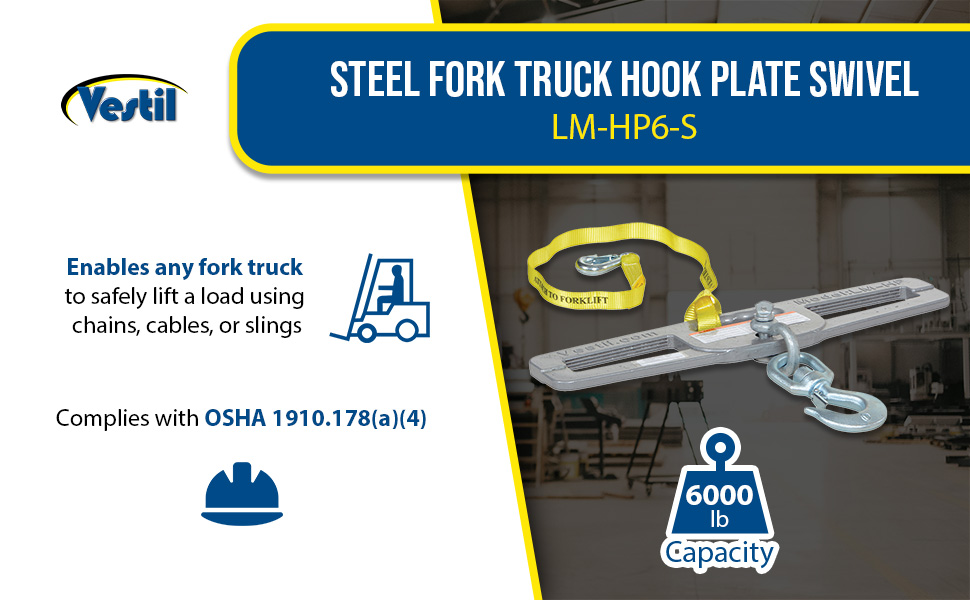 LM-HP6-S LM-HP6-SSteel Fork Truck Hook Plate Swivel 6,000 Lb. Capacity SilverUniform Capacity (lb.): 6,000