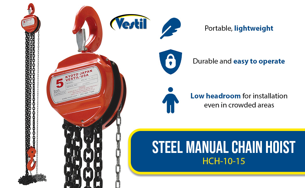 HCH-10-15 HCH-10-15Steel Manual Chain Hoist 15 Ft. Lift 10,000 Lb. Capacity OrangeUniform Capacity (lb.): 10,000