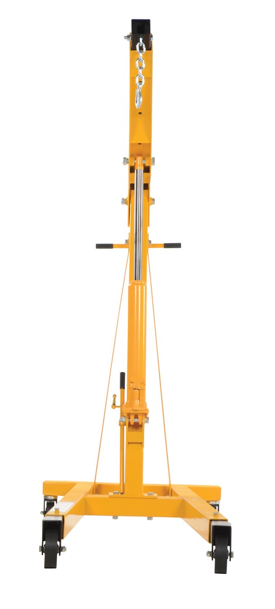 EHN-60-GThese portable units are great for hundreds of lifting applications. Telescopic boom for multiple lifting heights and capacities. Boom is raised and lowered with a manual hydraulic hand pump. The high-capacity hydraulic cylinder provides for faster lifting action and features a large diameter ram to withstand angled loads when lifting. Includes two rigid and two swivel casters for portability. Heavy-duty steel construction and painted finish.