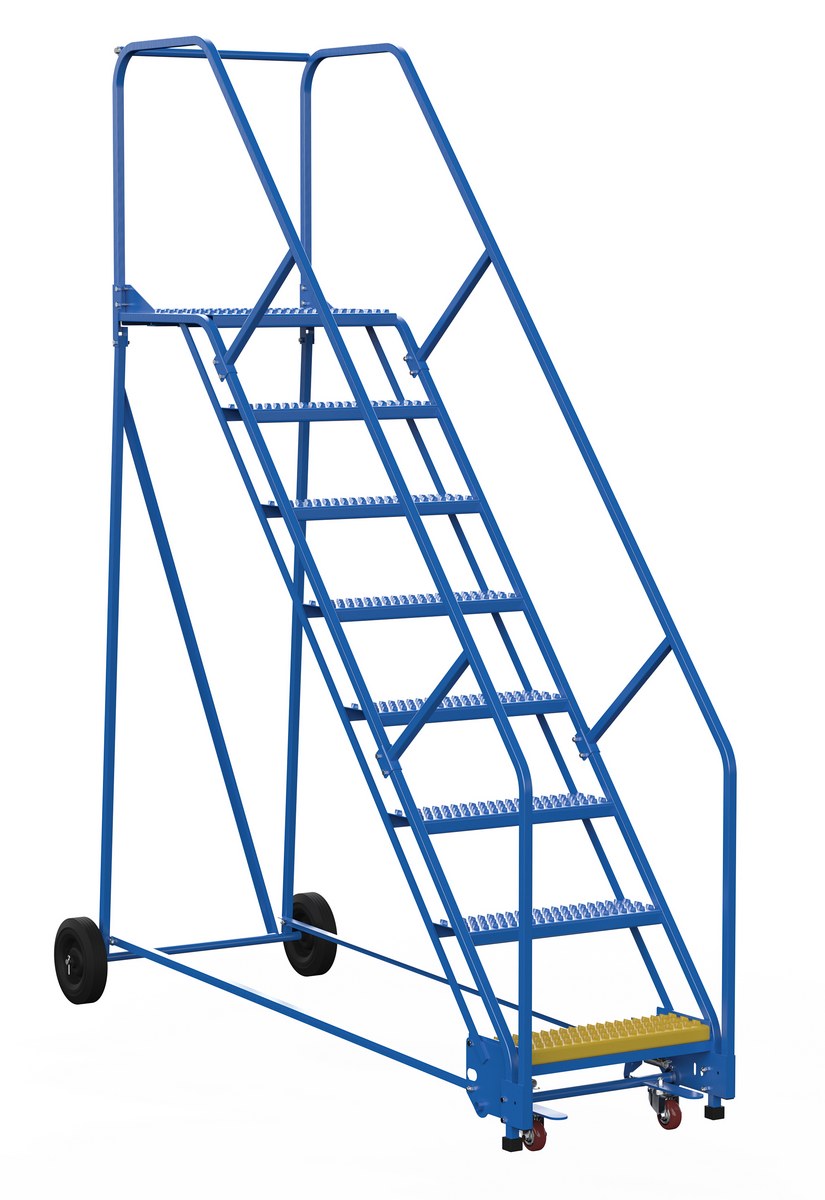 LAD-8-14-G LAD-8-14-GSteel Rolling Warehouse Ladder 58 Degree 8 Grip Strut 23-9/16 In. Step Width 350 Lb. Capacity BlueUniform Capacity (lb.): 350