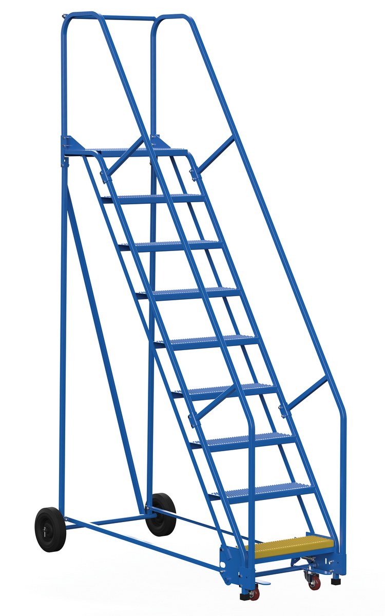 LAD-9-14-G-EZ LAD-9-14-G-EZSteel Rolling Warehouse Ladder 50 Degree 9 Grip Strut 23-9/16 In. Step Width 350 Lb. Capacity BlueUniform Capacity (lb.): 350