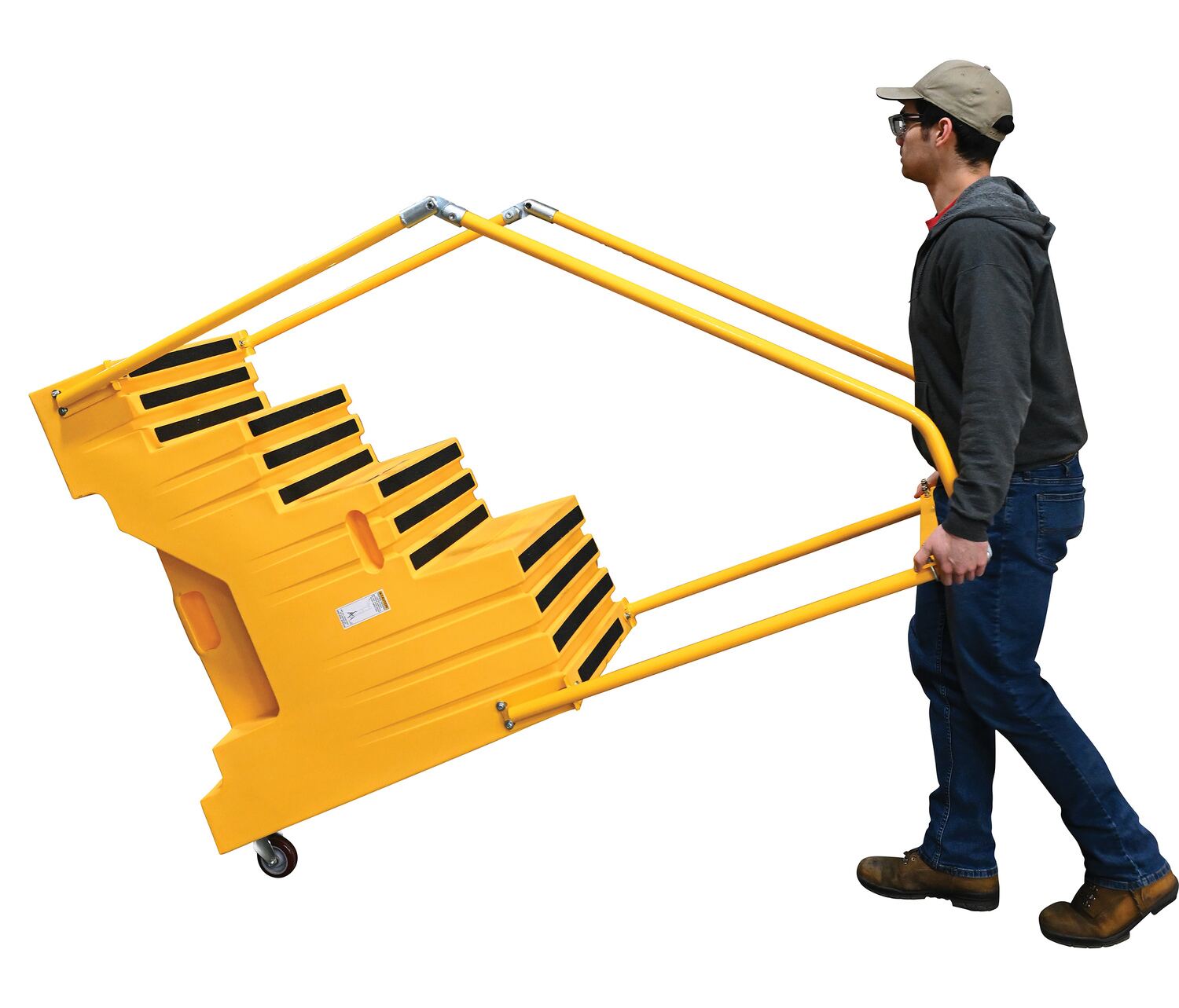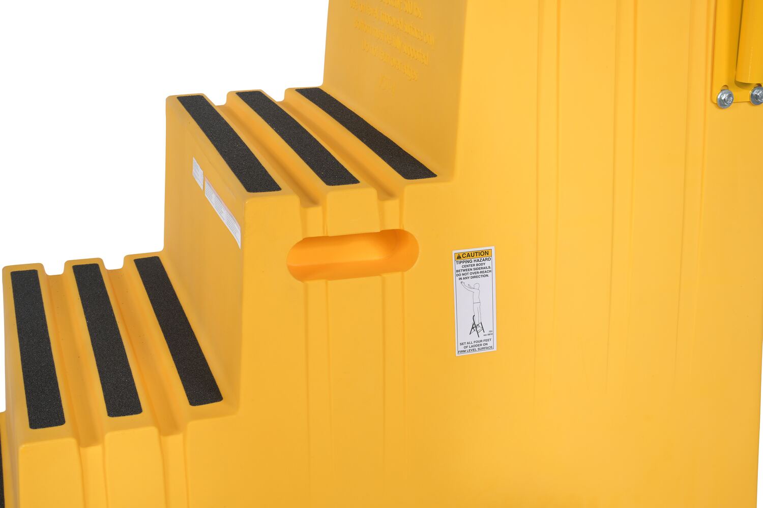DO NOT use the steps on uneven, sloped, or unstable surfaces. ONLY use the steps on even, level, improved surfaces (e.g. concrete or asphalt).