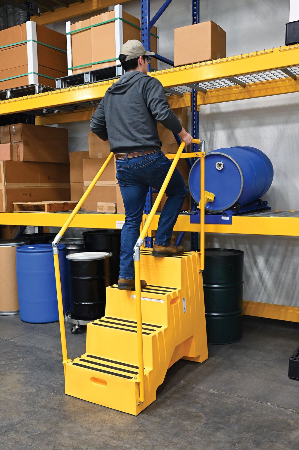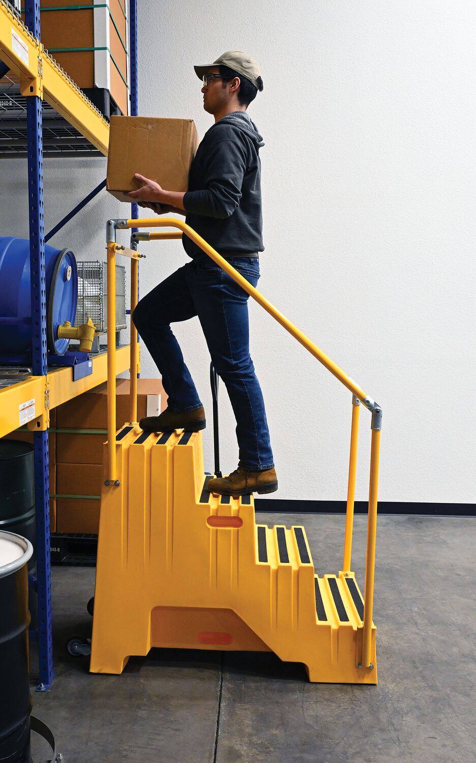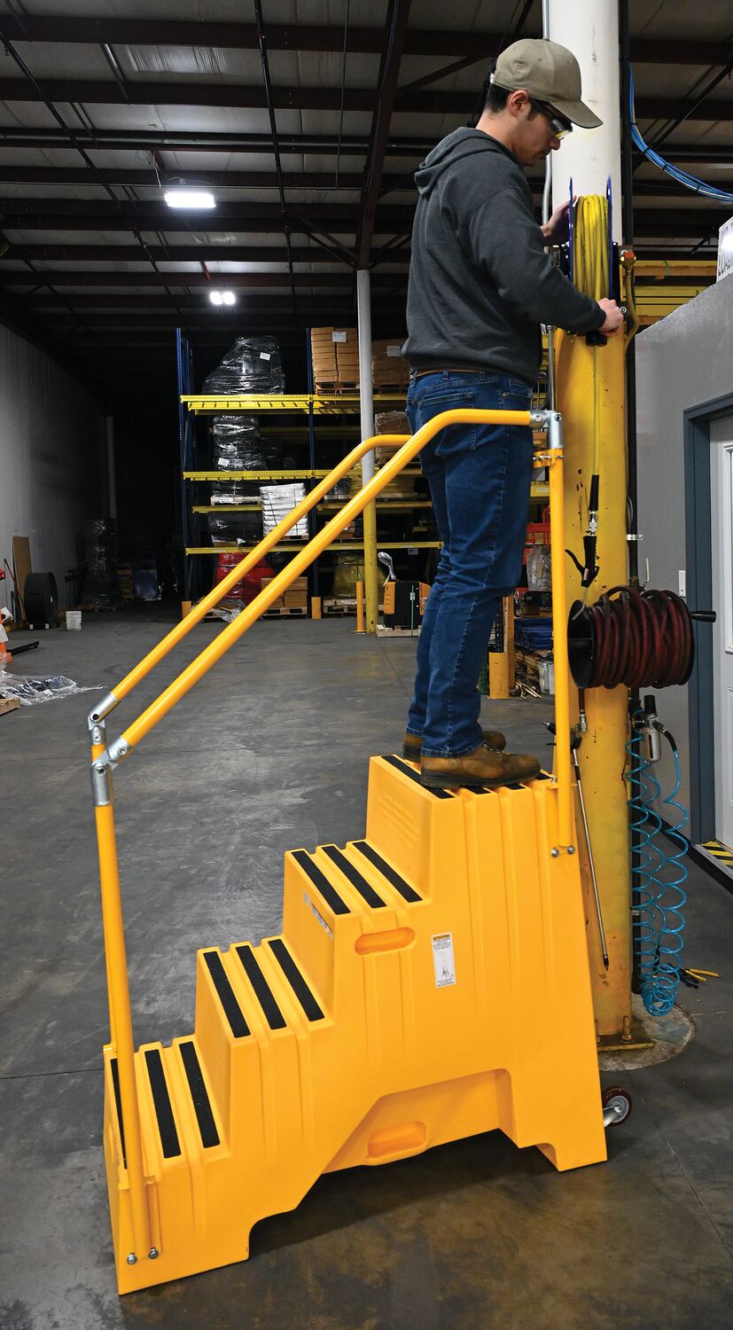 When items are out of reach, do not strain, simply step up with one of our Polyethylene Step Stools. The two and three step units have rear opening access storage compartments. The four step unit comes with handrails. All models have rubber feet and a non-skid tape surface. Hand holes are standard for easy one person transportation.