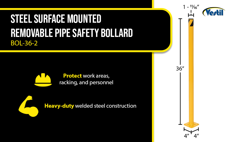 | Steel Pipe Safety Bollard 36 In. x 6-1/2 In. Yellow | Anchor Bolt: AS-344 Anchor Bolt Kit: AS-344-4PK | 36 |