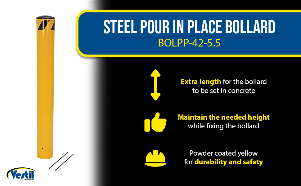BOLPP-42-5.5 BOLPP-42-5.5Steel Pour In Place Bollard 42 In. x 5-1/2 In. YellowUsable Height (in.): 42-1/2