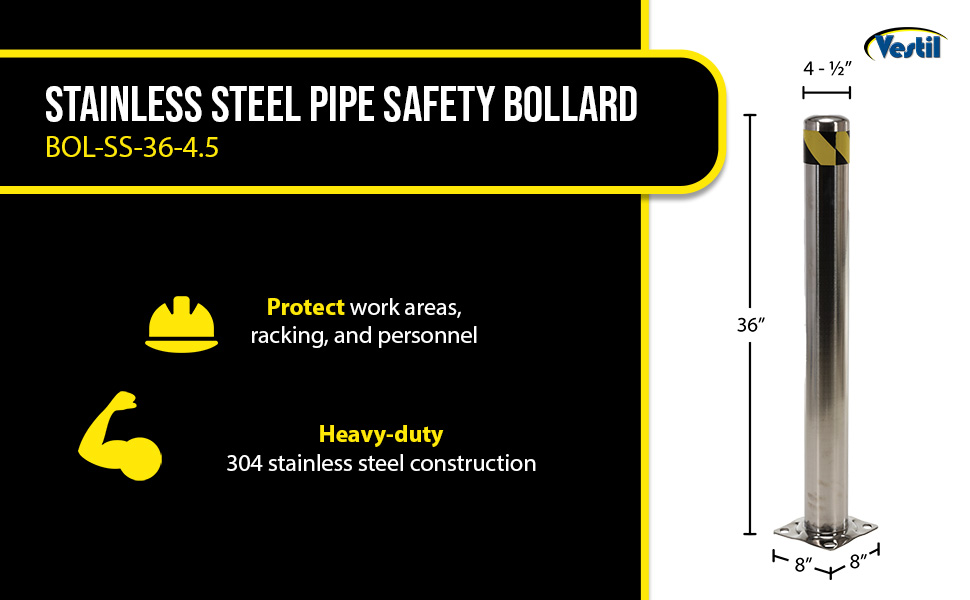 BOL-SS-36-4.5 BOL-SS-36-4.5Stainless Steel Pipe Safety Bollard 36 In. x 4-1/2 In. SilverOutside Diameter (in.): 4-1/2