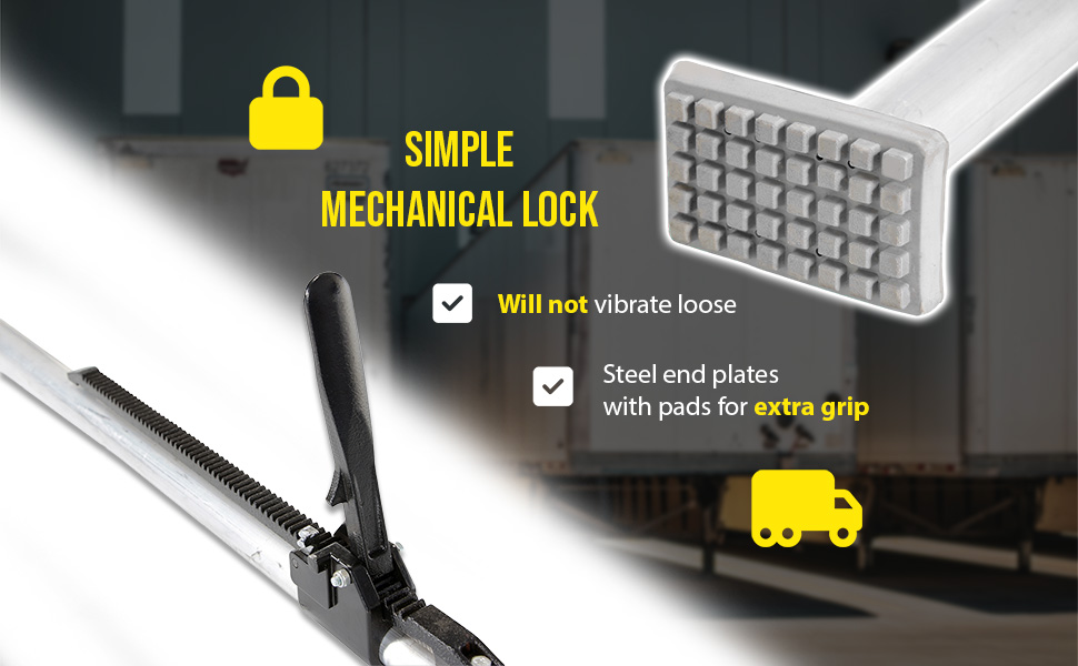 During transport, keep trailer contents securely in place with these easy to use Cargo Bars. Constructed of 1-1/2." square tubing, unless specified. Wall construction is lightweight, yet extremely strong. Square articulating steel end plates feature rubber pads for positive gripping action. End plates measure 4" x 4" on models CL-15, CL-17 & CL-20. End plates measure 4" x 2-3/8" on model CB-5, CB-7 & CB-7-S and 3-3/4." x 3-3/4." on model CL-18. End plates measure 2-3/8" x 3" on model CB-PU-3. Bars fit between trailer walls.