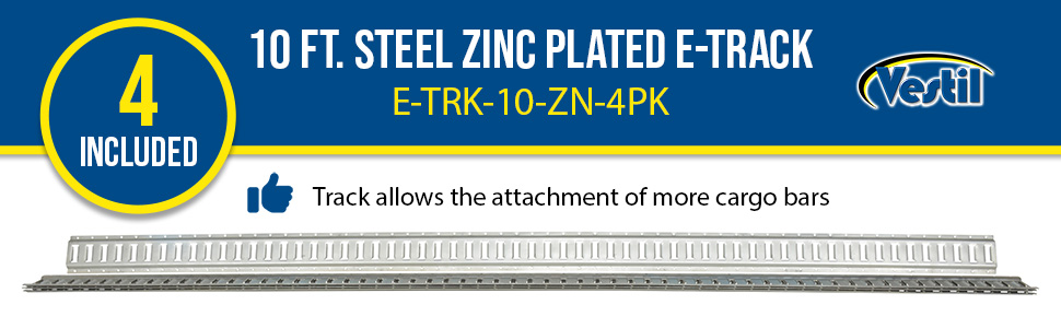 E-TRK-10-ZN-4PK E-TRK-10-ZN-4PK Steel Zinc Plated E-Track 10 Ft. Length 4 Pack Gray 90 Days Limited Warranty 88