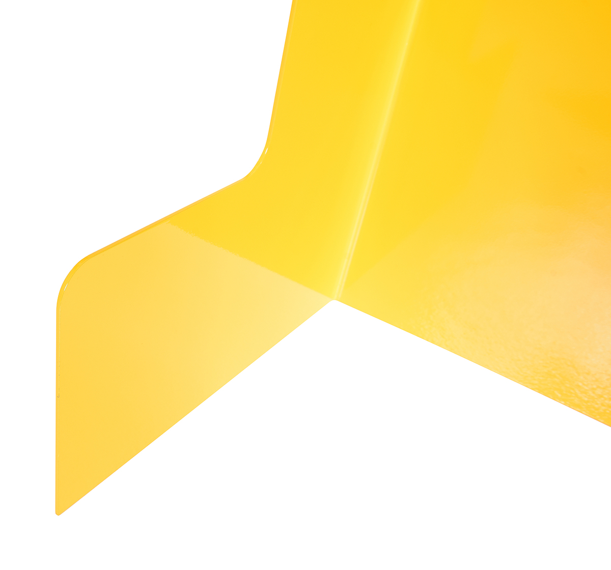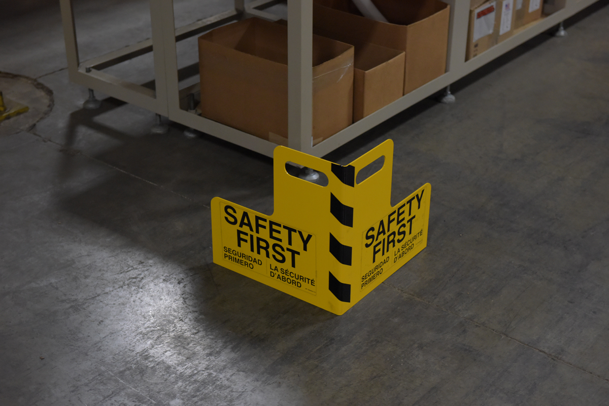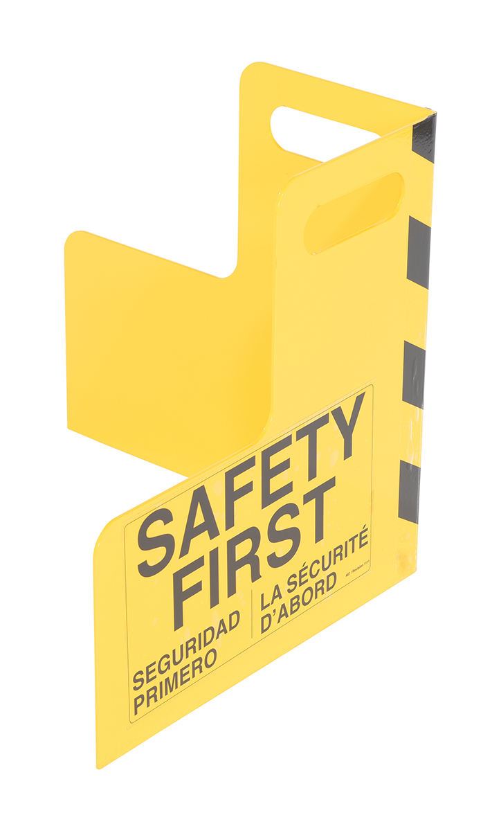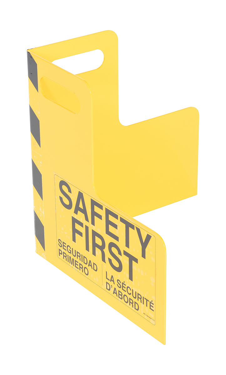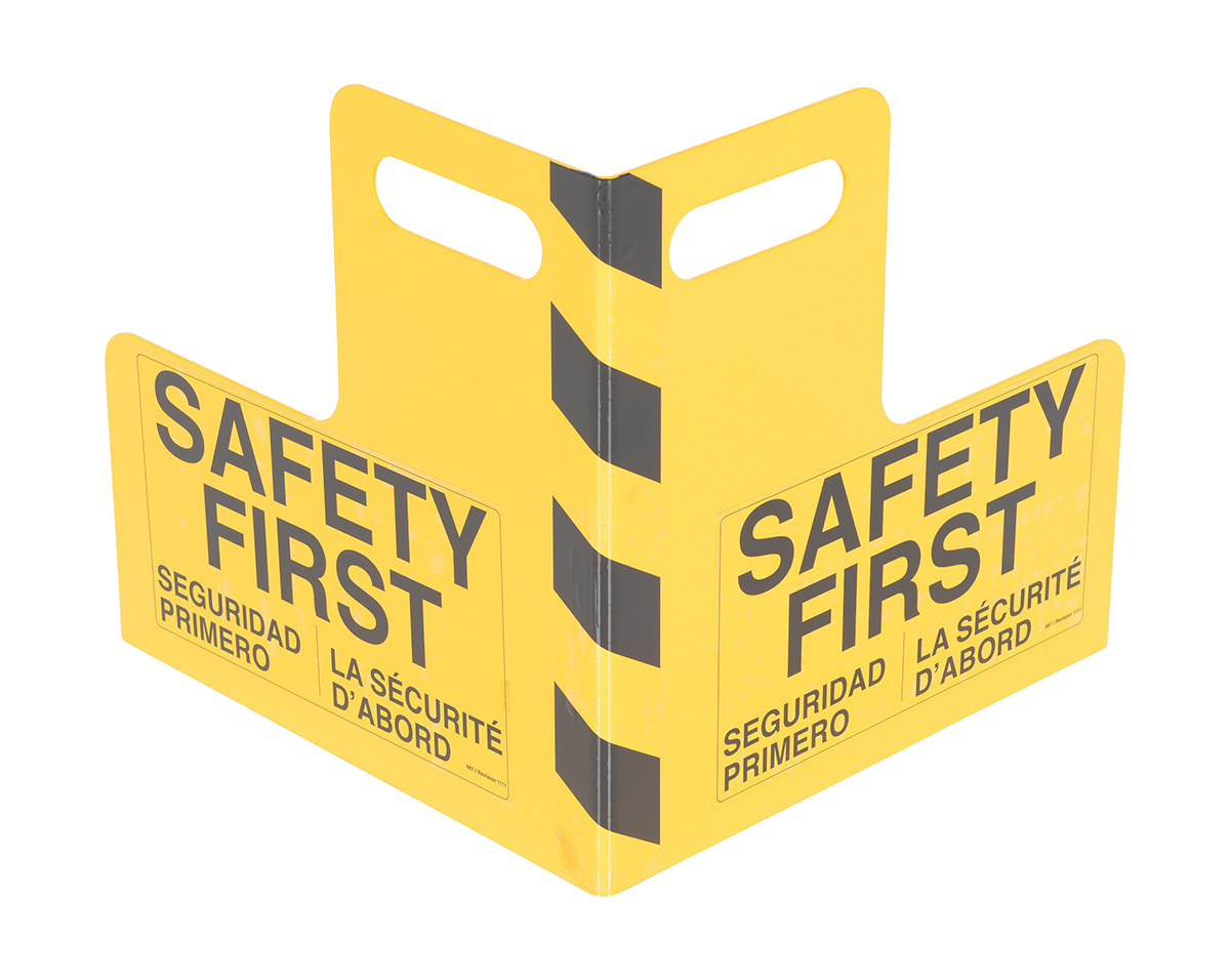 Protect busy corners, expensive machinery and personnel with 90 degree perpendicular protection. "SAFETY FIRST" promotion reminds personnel of the number one priority. Steel units include a baked in powder coated yellow finish for added toughness.