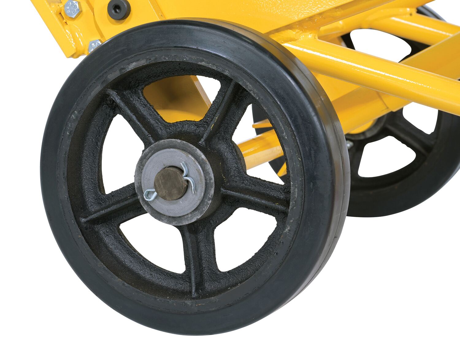 Steel Drum Truck Cradle With Mold On Rubber Wheel 20-1/16 In. x 23-11/16 In. x 60-5/8 In. 1000 Lb. Capacity Yellow