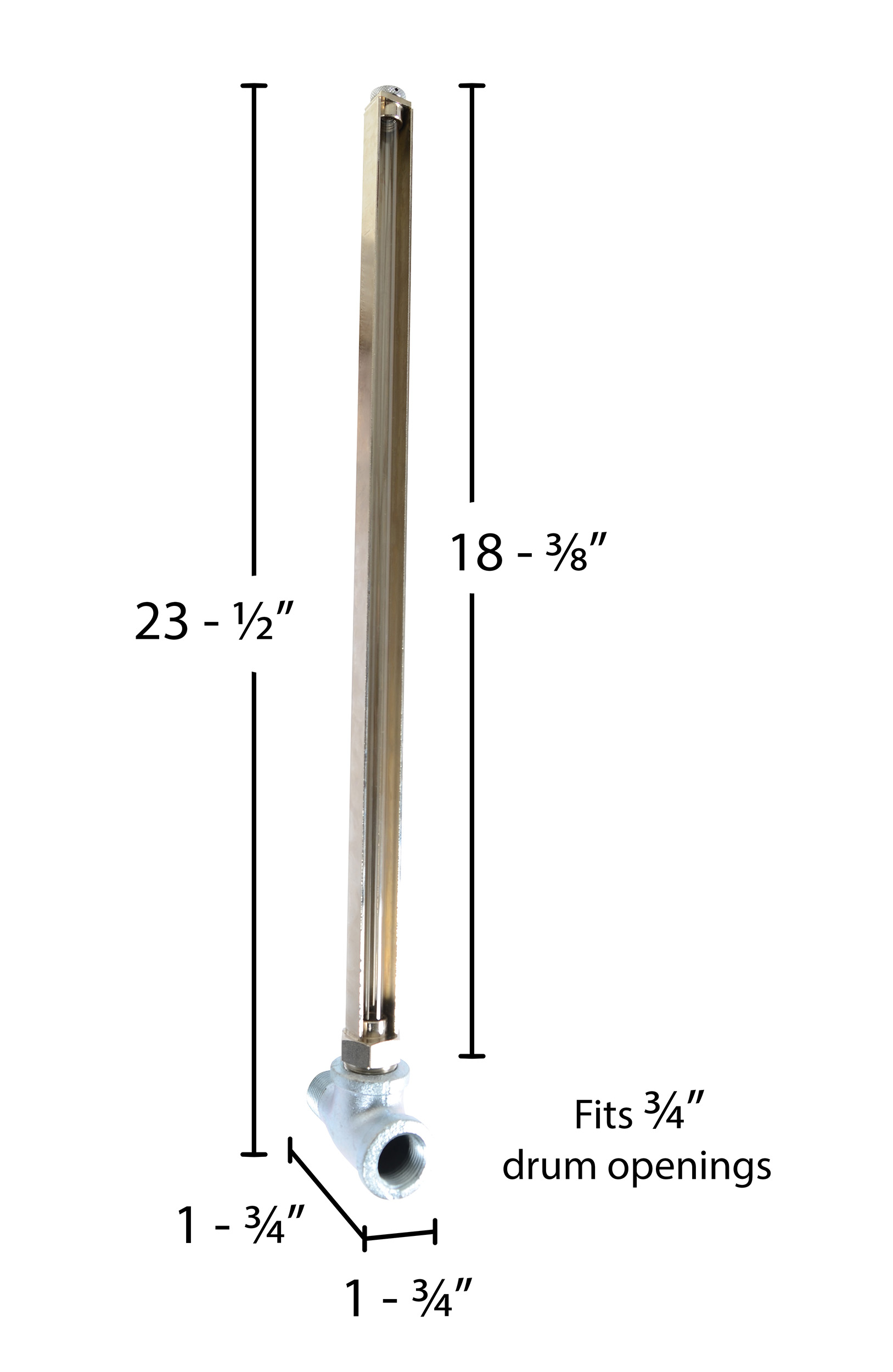 The DGLI-4 allows personnel to read the level of contents in a drum. Accommodates 3/4" faucet. 18-3/8" site gauge. For use with plastic or steel drums. Works well with most oils, solvents, and chemicals. Faucets sold seperately.