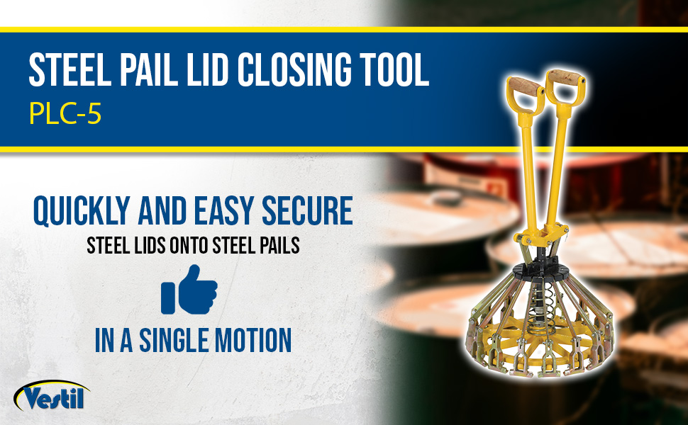• Unique design quickly and efficiently closes 5-gallon steel pail lids