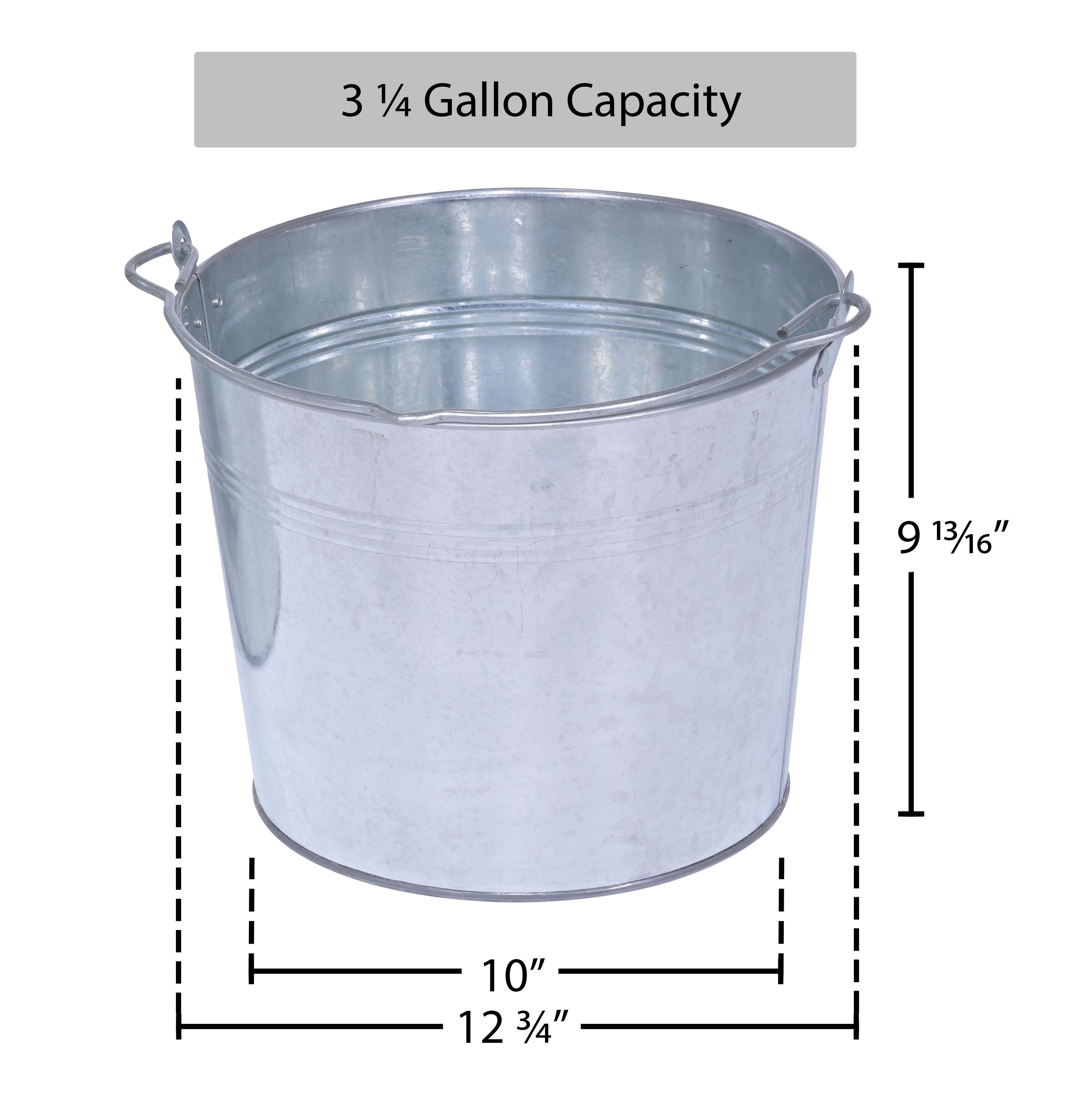 BKT-GAL-325 BKT-GAL-325Galvanized Steel Bucket 3-1/4 Gallon CapacityCapacity (gal.): 3-1/4