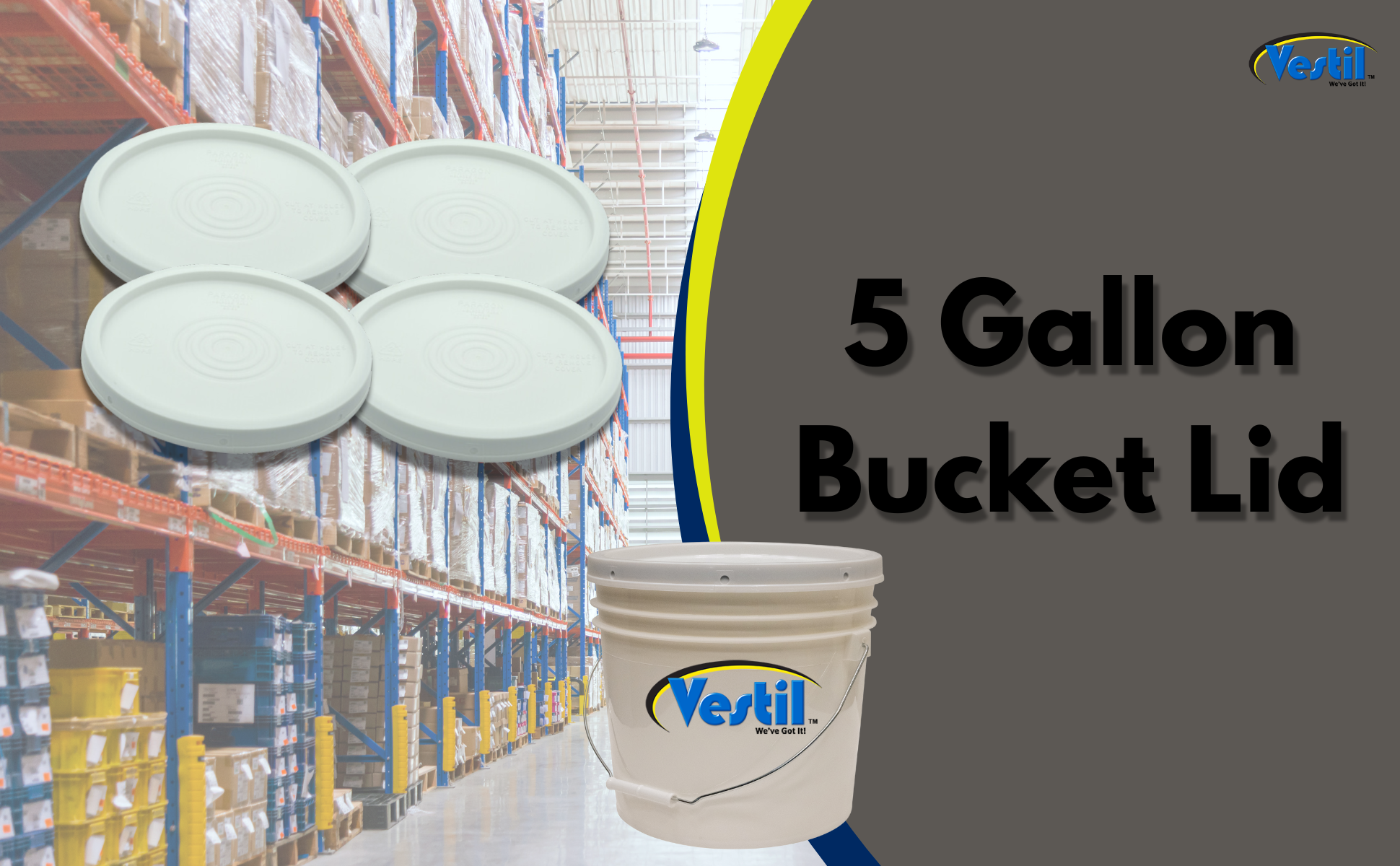 LID-54-PY LID-54-PYHigh Density Polyethylene 3-1/2, 5 and 6 Gallon Standard Lid YellowAccommodating Pail Size (gal.): 3.5 , 5, 6