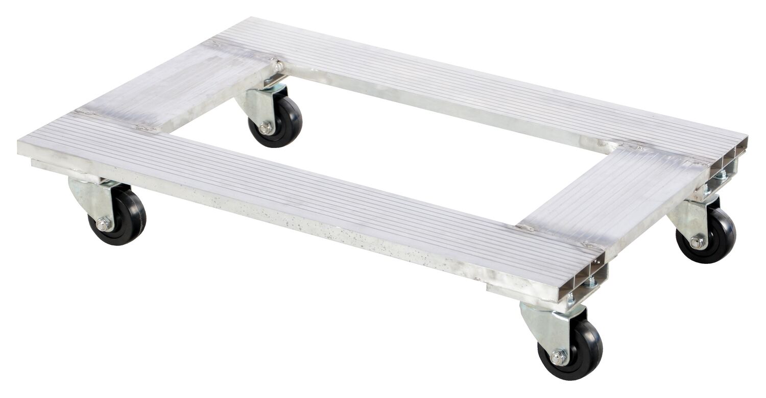 This versatile Aluminum channel dolly is manufactured from aluminum for a strong yet lightweight design. Aluminum construction will not rust and never needs painting. Each dolly includes four (4) swivel casters for maximum maneuverability. Order with the optional pull strap or hook for added operator convenience.