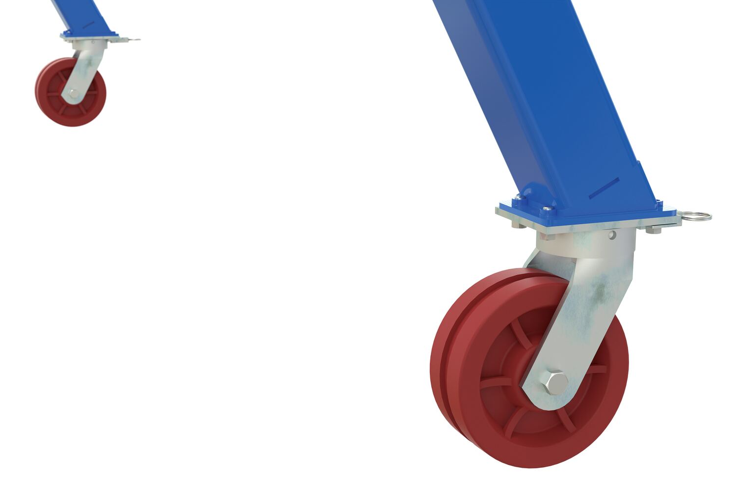 The adjustable height steel gantry crane is designed for transporting and positioning materials along the beams length. The cranes beam height can be adjusted to better conform to the working conditions making it both ergonomically friendly and cost effective. Unit comes standard four (4) V-groove casters, allowing for quick movement and positioning adjustments. Height is adjustable in 6" increments. Do not move units while loaded. Hoist and trolley can be ordered separately. A painted blue finish protects the unit from rust. Designed for semi-permanent or permanent applications.