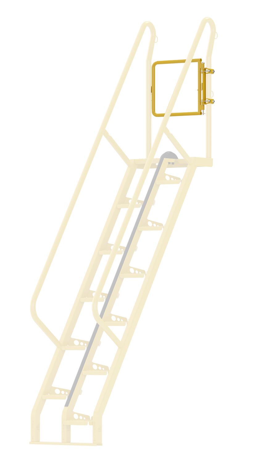 Often times the top step of a ladder is left open, with no railing. This optional gate brings the two ladder side rails together, providing much needed personnel protection. The gate includes a top and bottom rail ensuring high and low user safety.