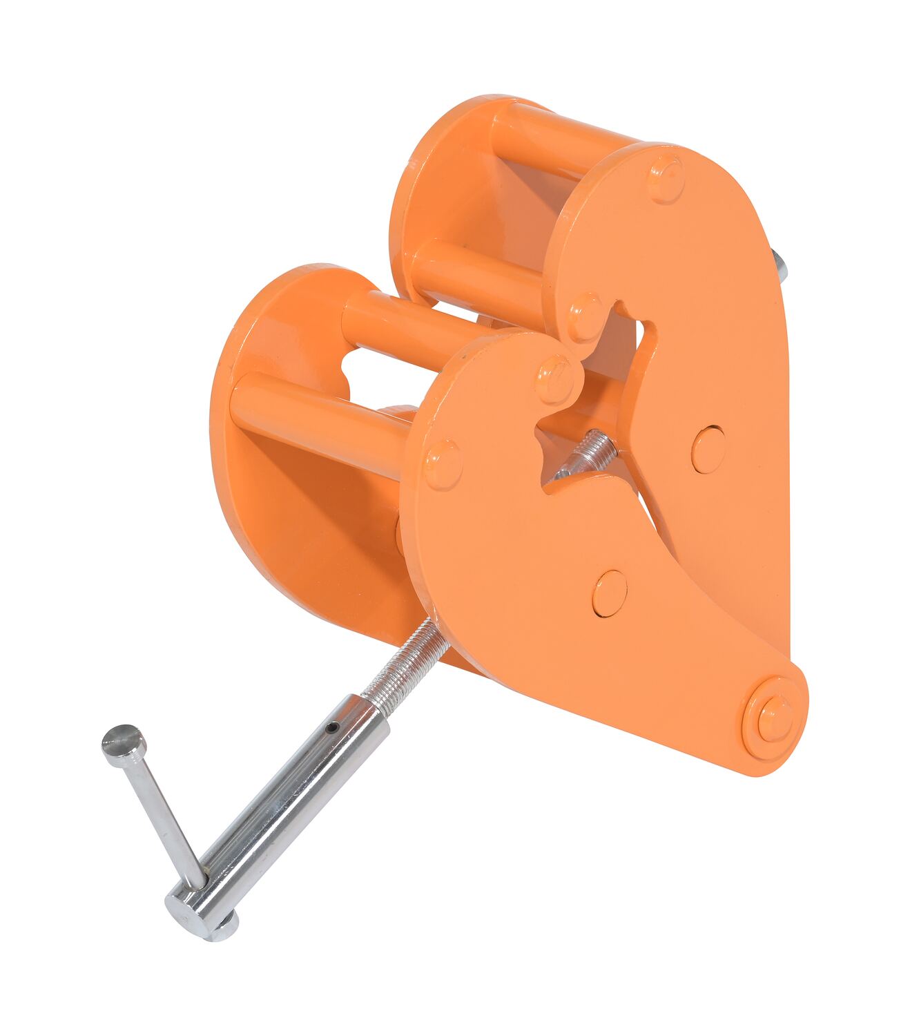 Steel Beam Clamp Horizontal Lift Style 21-1/4 In. x 5-1/4 In. x 7-3/4 In. 10000 Lb. Capacity OrangeThe beam clamp is designed to reduce the I-beam flange stress by distributing loads away from the flange edges during overhead lifting applications. This versatile unit can be interchanged from one gantry to another in a matter of seconds. A bar is located at the bottom of the beam clamp for attaching a hoist (sold separately). Painted finish.