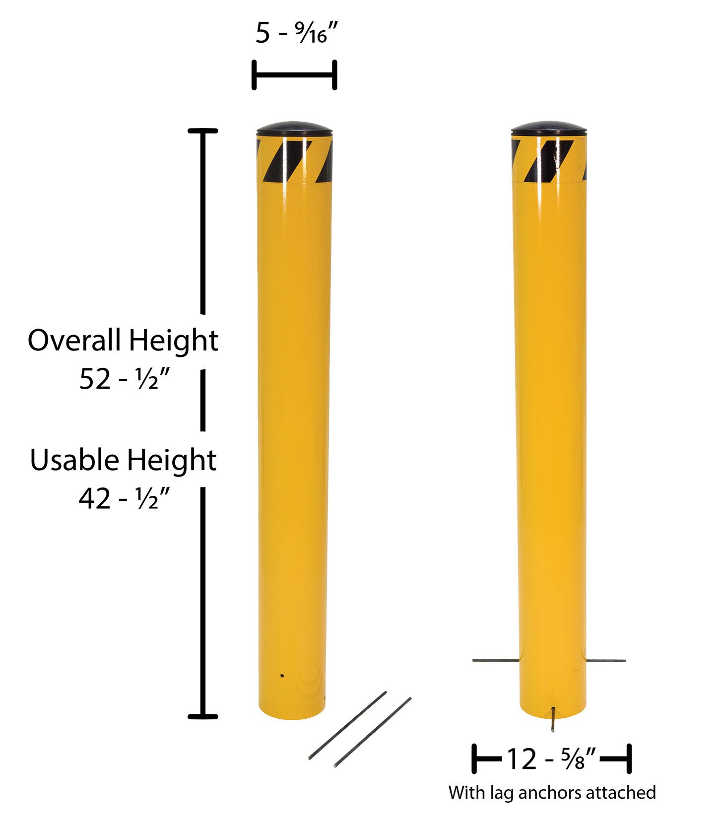 Steel Pour In Place Bollard 42 In. x 5-1/2 In. YellowMake your bollards permanent by setting them in concrete. The extra length of the pour In place bollard allows you to maintain the needed height while fixing the bollard in concrete. Bollard is an open-top design so the bollard can be filled with concrete to increase its strength and durability. Assembly required.