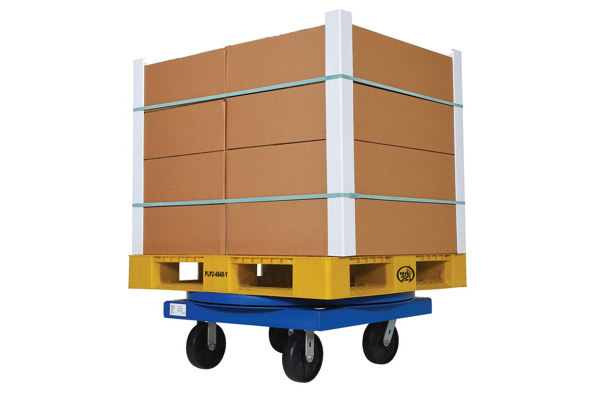 Reduce fork truck dependency by transporting pallets and crates to workstations with the economical pallet & container transporter with carousel. Unit features casters for easier mobility. Steel construction. Powder coat finish.