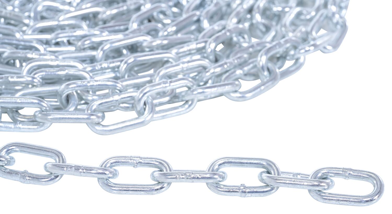 Galvanized Steel Bollard Safety Chain 25 Foot 3/16 In. Thickness Silver