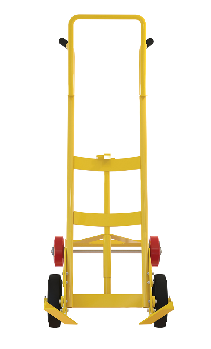 Steel Drum Truck with 4 Rigid Rubber Wheels for Plastic Drums 1000 Lb. Capacity YellowDesigned for moving 55 gallon plastic drums. Features a spring mechanism, which allows for easier tilting of fully-loaded drums. Four-wheel design for easier drum transportation when tilted. Top loop handle allows for easier control when moving. Drum is secured to truck with an adjustable height drum hook bar. Removable drum hook bar includes built-in bung nut wrenches. Capacity is 1,000 pounds. Steel construction with powder coat finish.
