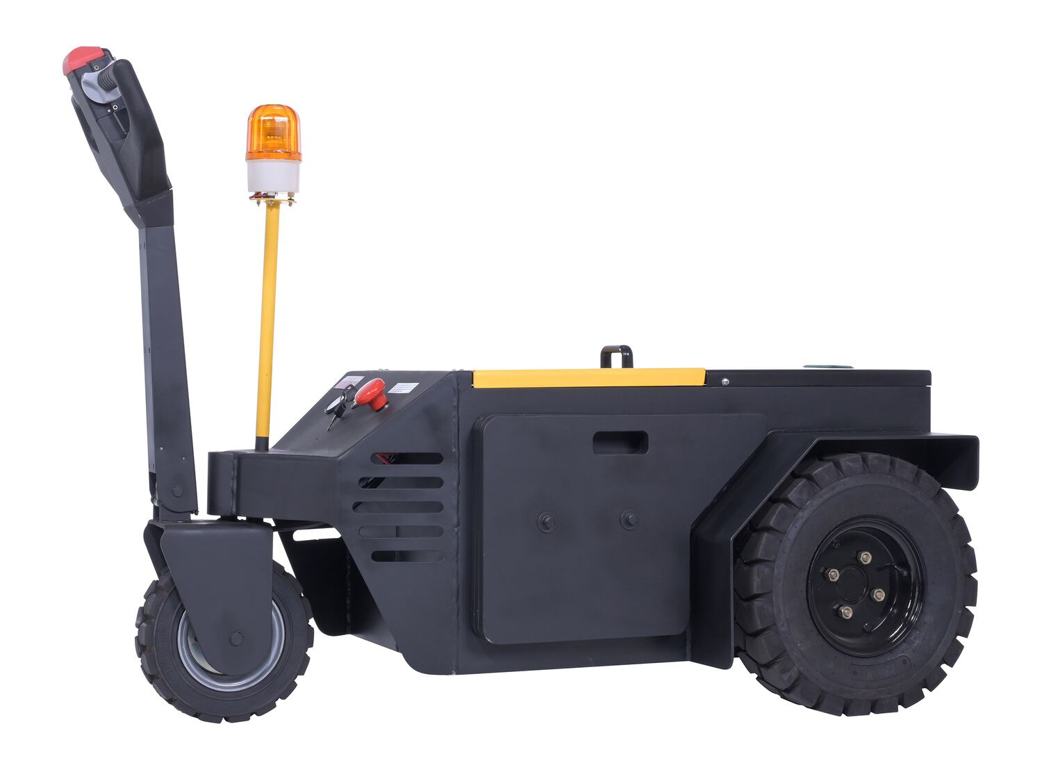An electric powered heavy duty tugger is suitable for use in airports, hospitals. They can also be used in a variety of applications like pulling industrial carts, hoppers, and trailers; all without the needless extreme stress or strain on your body. Ergonomic handle features easy to operate throttle with forward/reverse speeds and horn. Also included is an electromagnetic disc brake with automatic dead-man feature that activates when the user releases the handle.