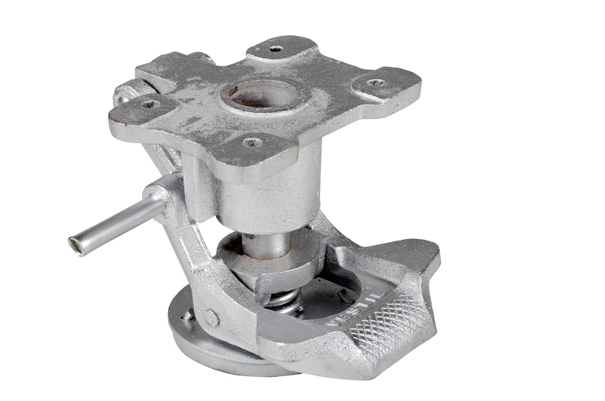 Steel Top Mount Floor Lock 4-1/2 to 5-5/8 In. Height SilverA general purpose Floor Lock may be used on platform trucks, fixture dollies, or equipment with casters. Simple foot pressure immobilizes equipment. Locks when large friction face is pressed against the floor. To release simply kick release rod. Brake is independent of casters and can be installed to any convenient location on the cart. Vertical mounting plate designed to mount to sides of carts and other portable products. The spring loaded pad accommodates uneven floors. Unit mounts with pad off the floor when retracted.