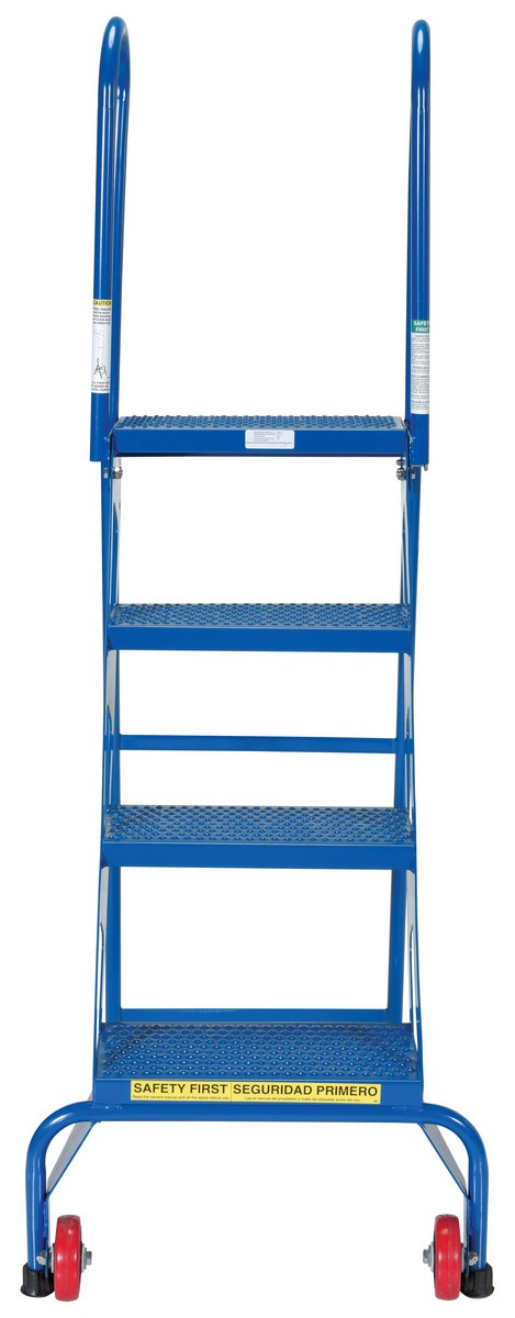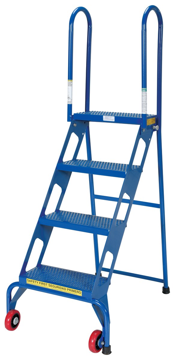 Steel Folding Ladder with Wheels 4 Step 350 Lb. Capacity Blue