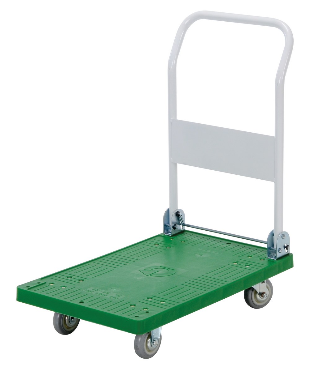 Plastic Platform Truck with Fold Down Handle 18 In. x 30 In. 250 Lb. Capacity Green