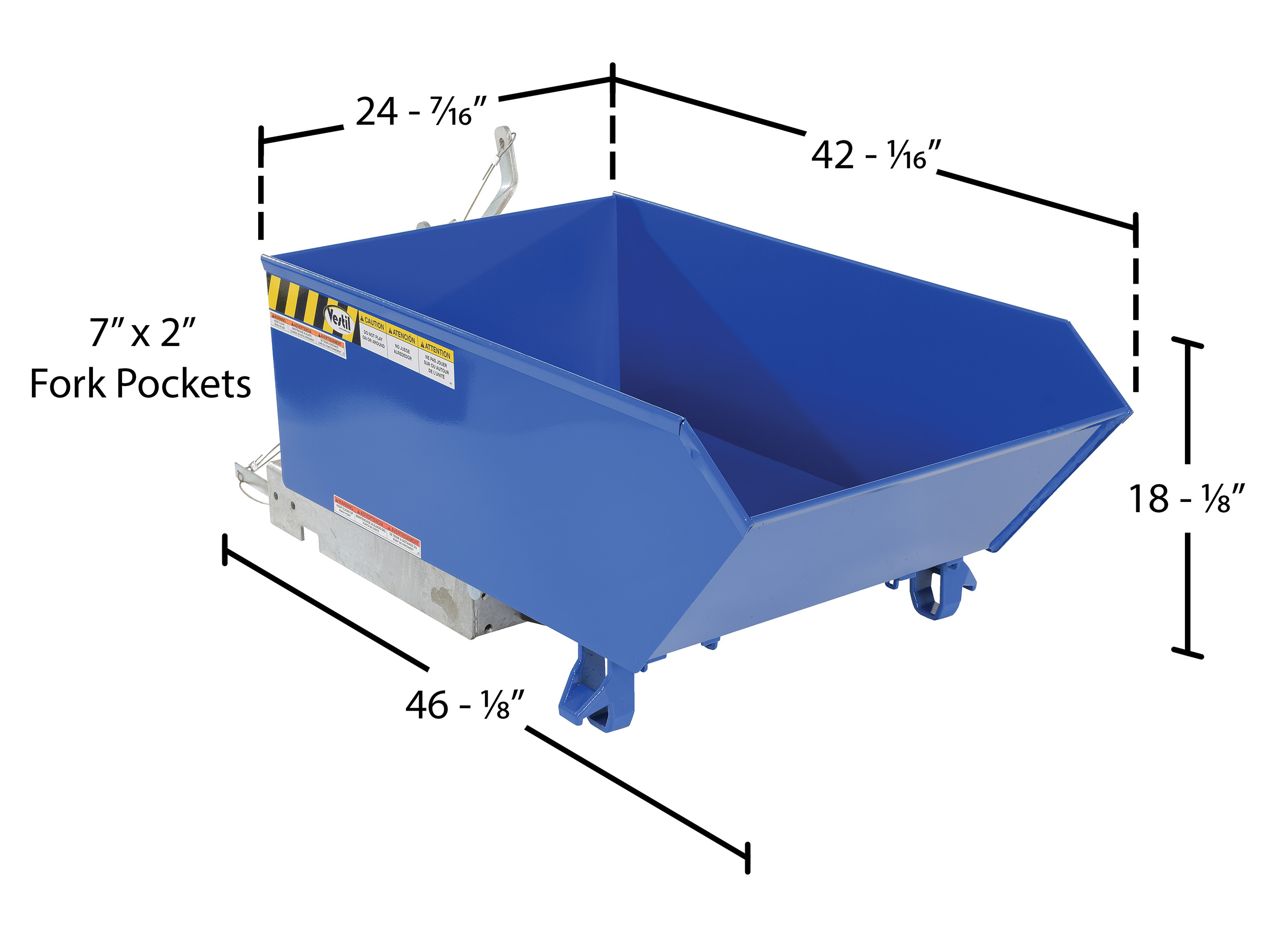 • Included manual pull-cable dumps hopper from seat of fork truck
