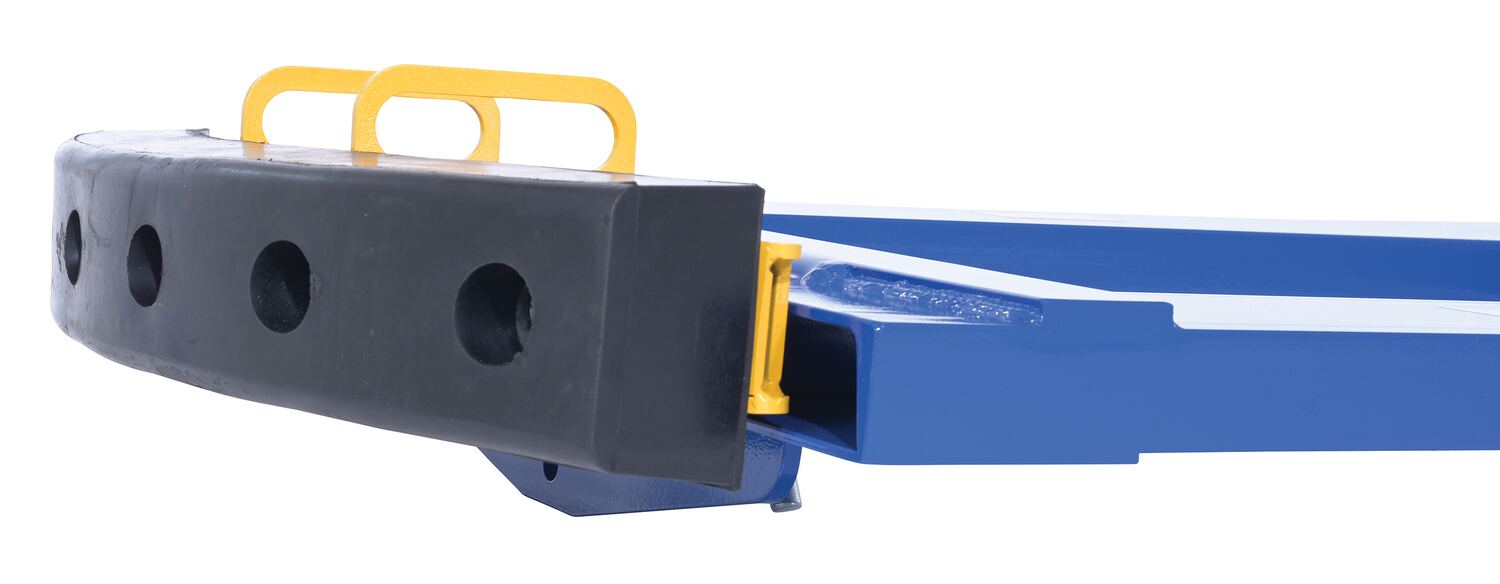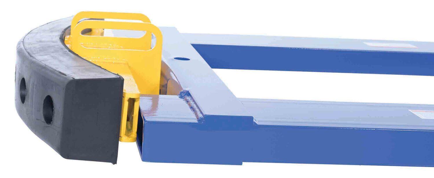 Steel Fork Truck Hook Base 44 In. Length With Steel/Rubber Push Bumper-Attachment to 2 In. Receiver 15 In. x 28 In. x 5-3/4 In Blue/Yellow